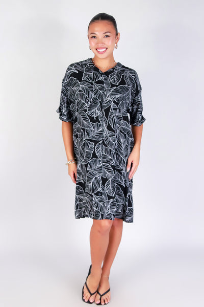 TROPICAL LEAF BUTTON DOWN DRESS