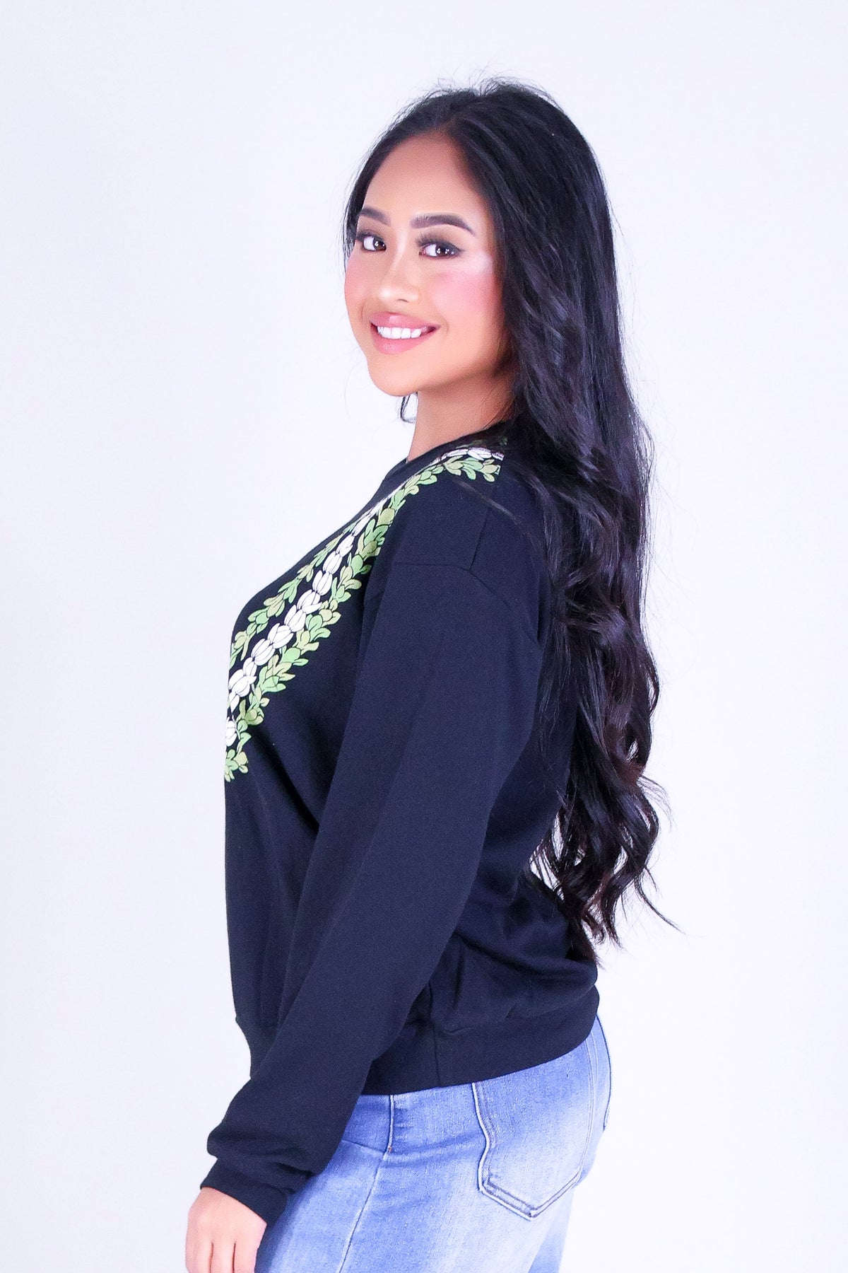 PAKALANA PIKAKE SWEATER is available in color BLACK and in size SMALL, MED, LARGE.