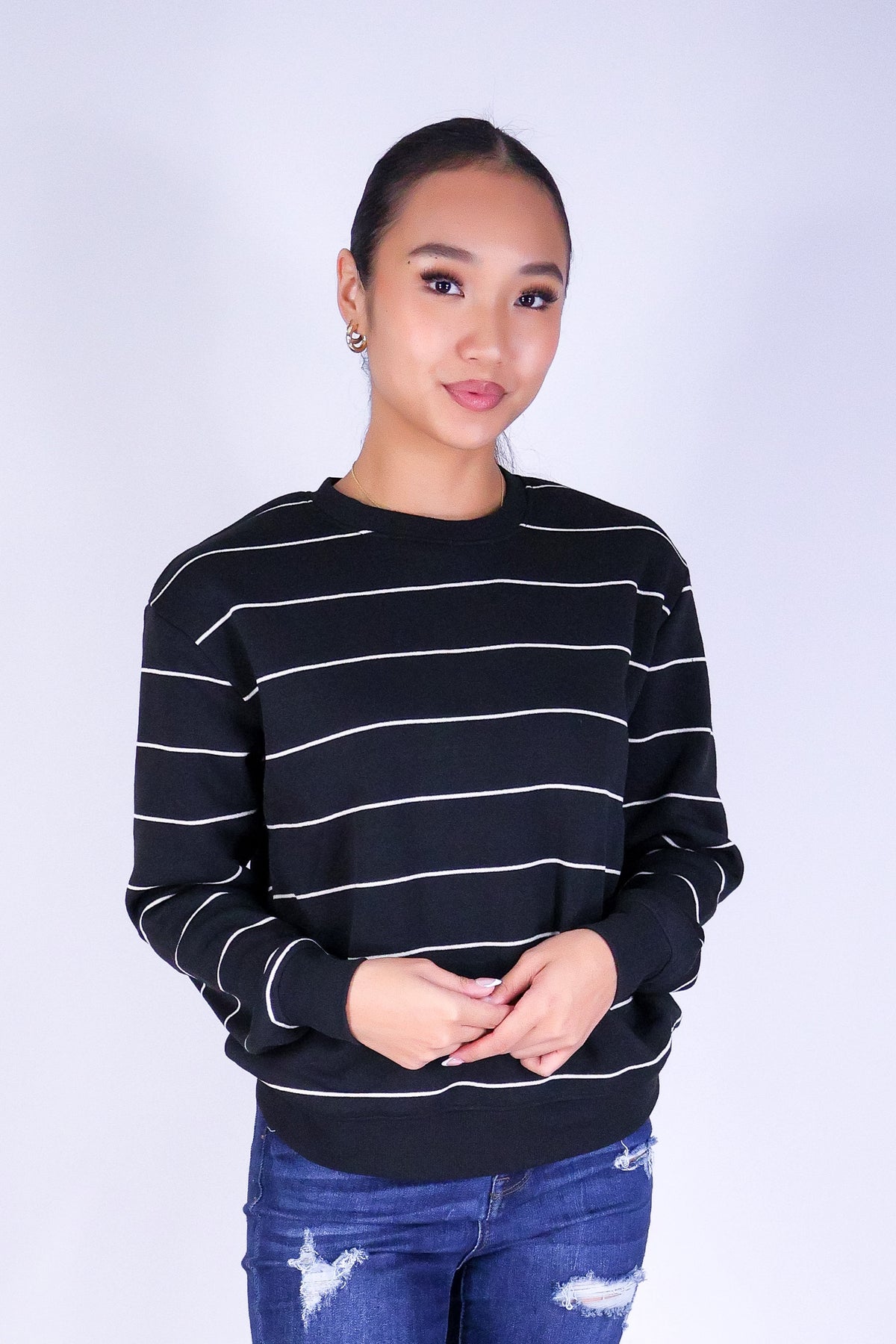 BLUSH LINES SWEATER is available in color BLACK and in size SMALL, MED, LARGE.