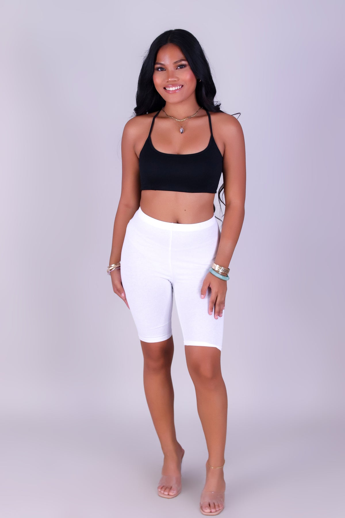 ALL-DAY RIDER BIKE SHORTS is available in color WHITE and in size SMALL, MED, LARGE.