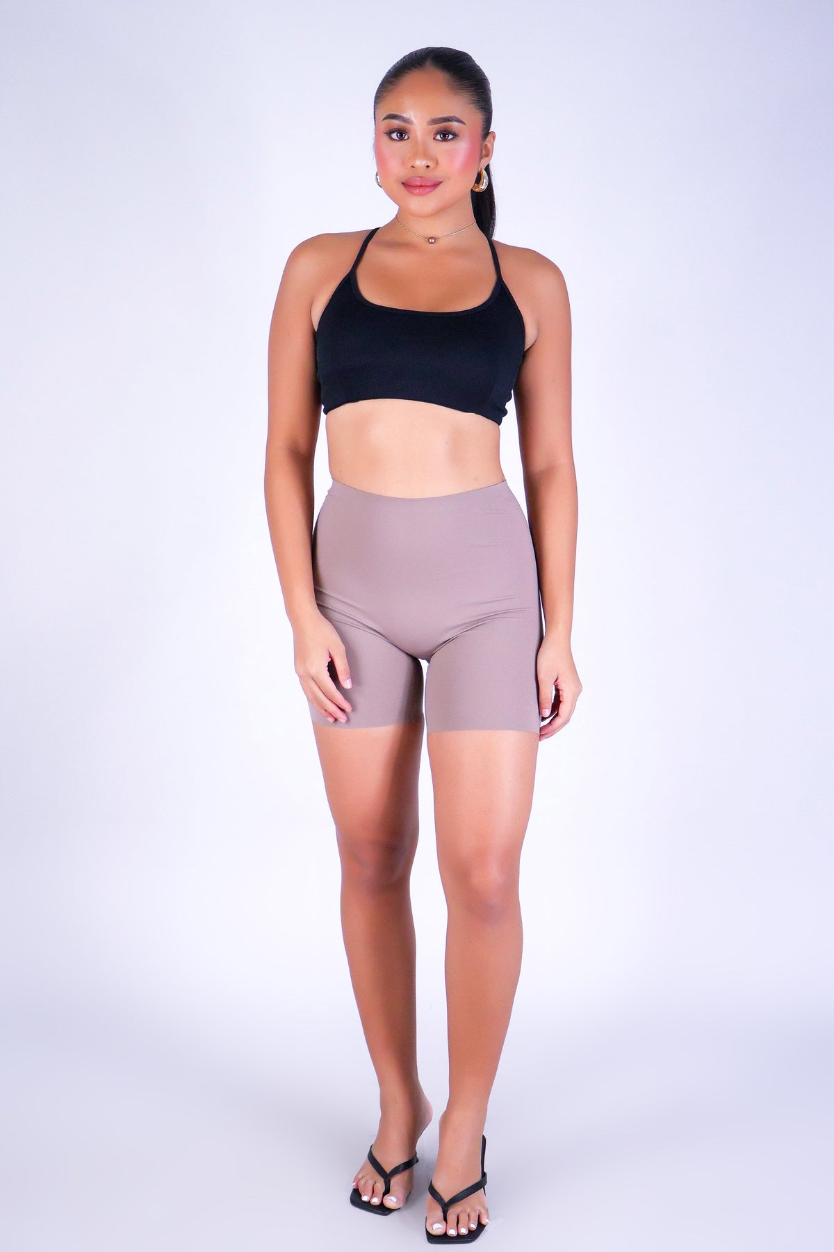 KEEP YOU RIGHT BIKE SHORTS is available in color MOCHA and in size SMALL, MED, LARGE.