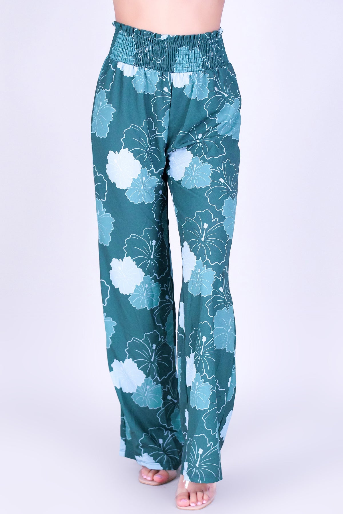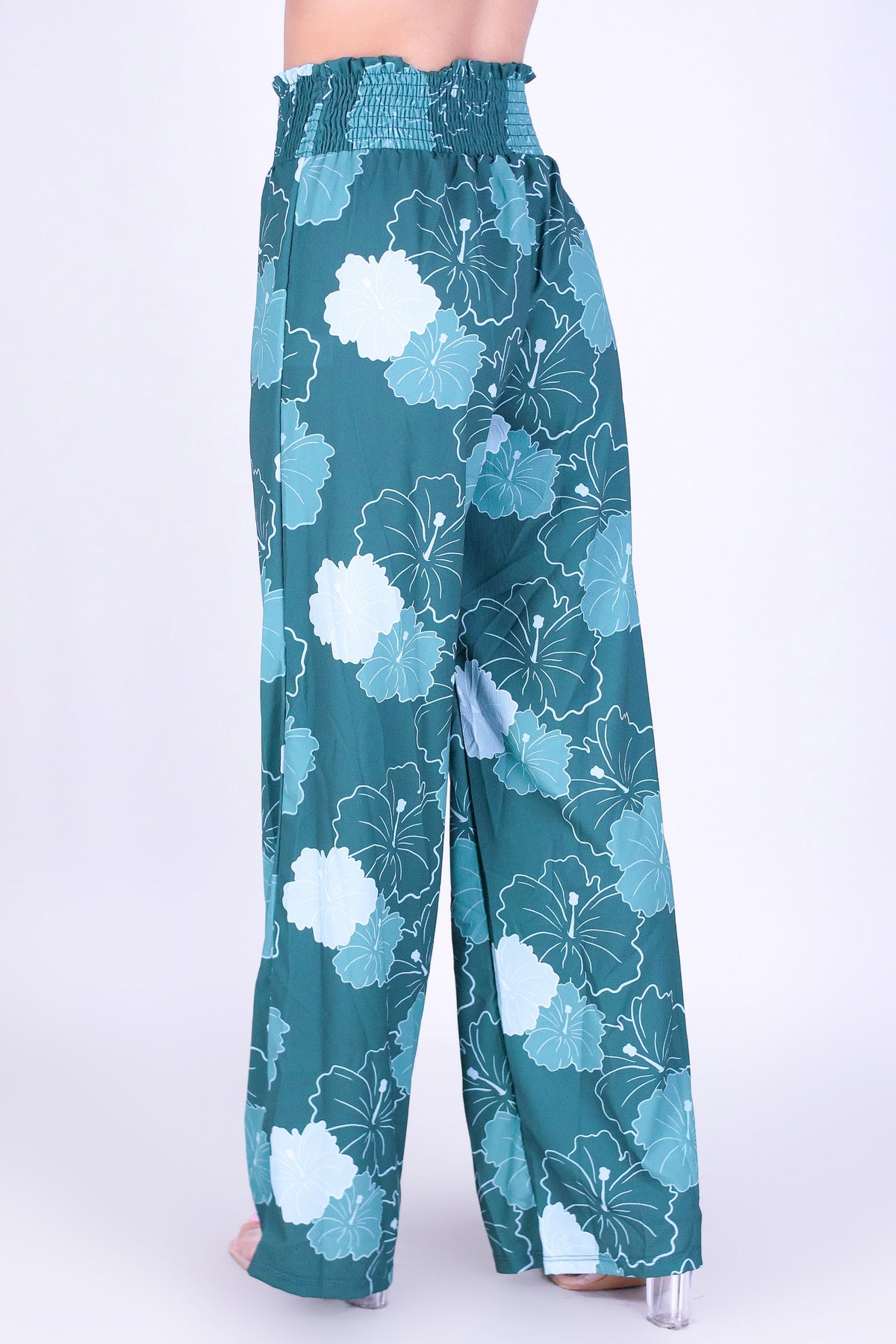 MULTI ALOALO SMOCKED WAIST PANTS is available in color GREEN and in size SMALL, MED, LARGE, XL.