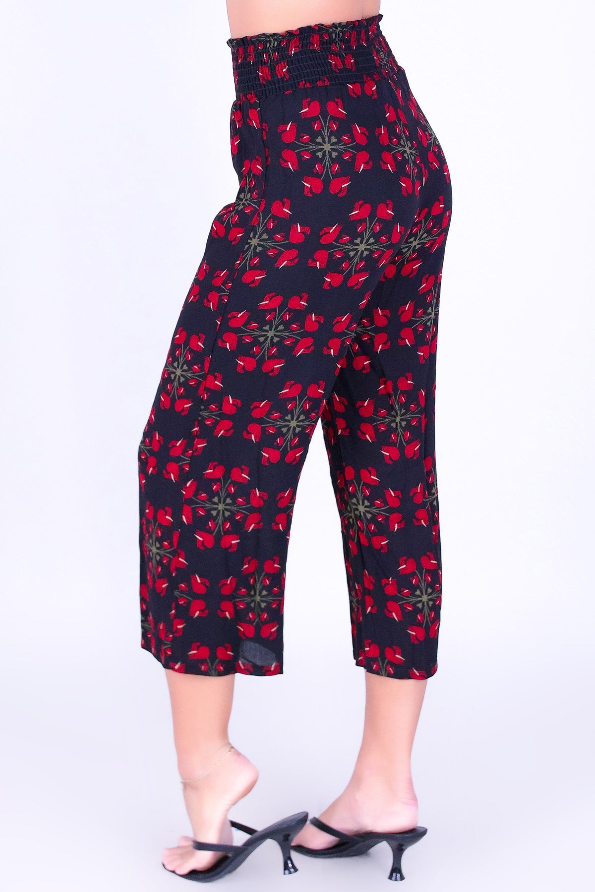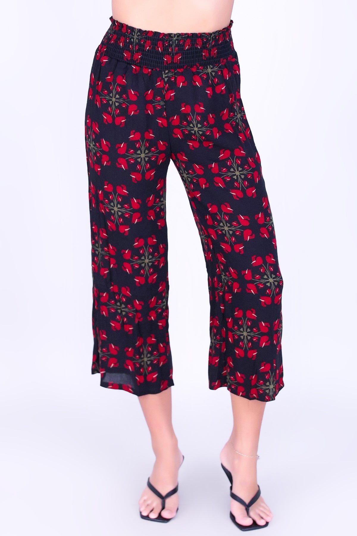ANTHURIUM QUILT SMOCKED WAIST CAPRI'S