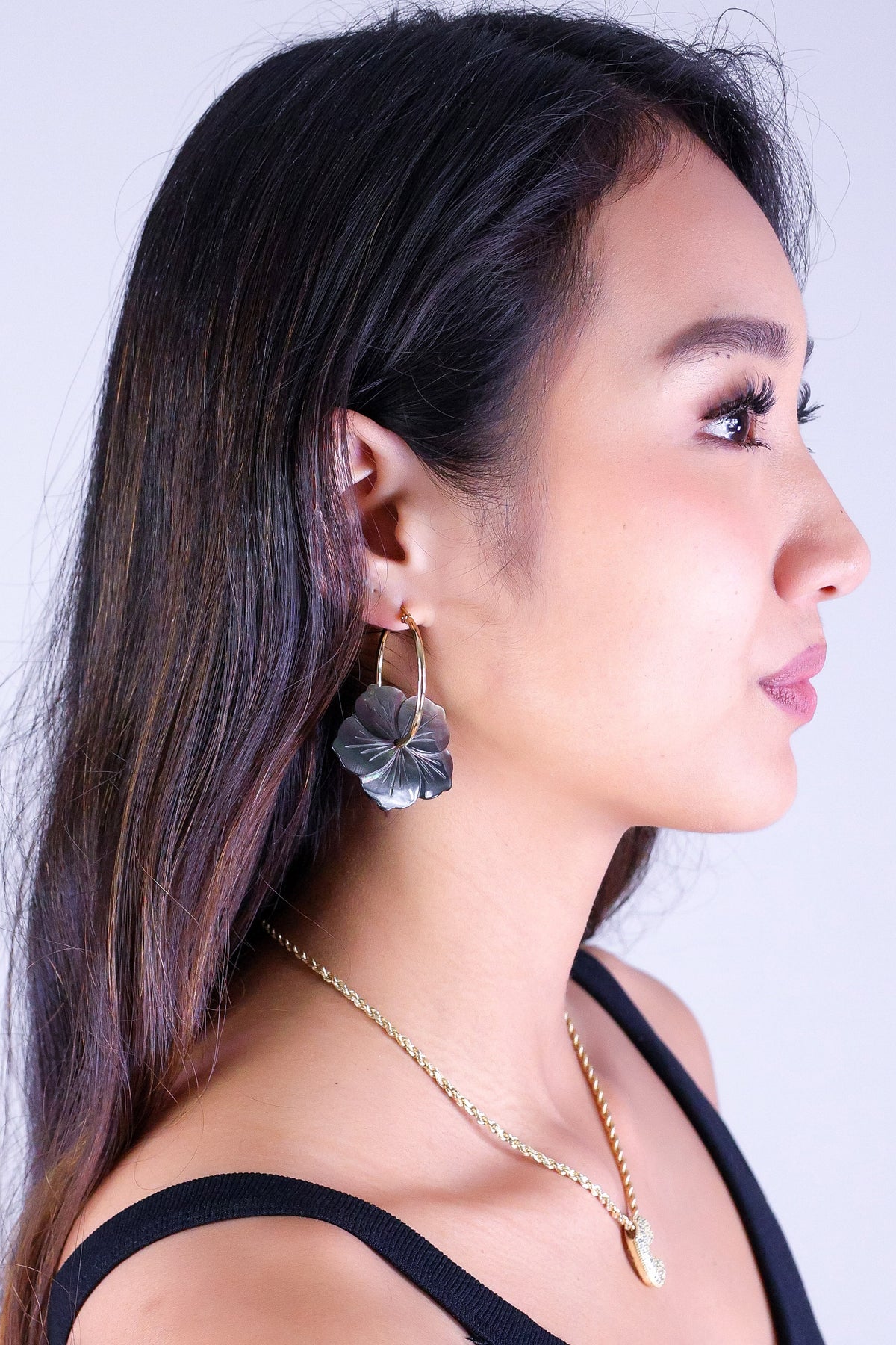 HIBISCUS HOOP EARRINGS is available in color GOLD.