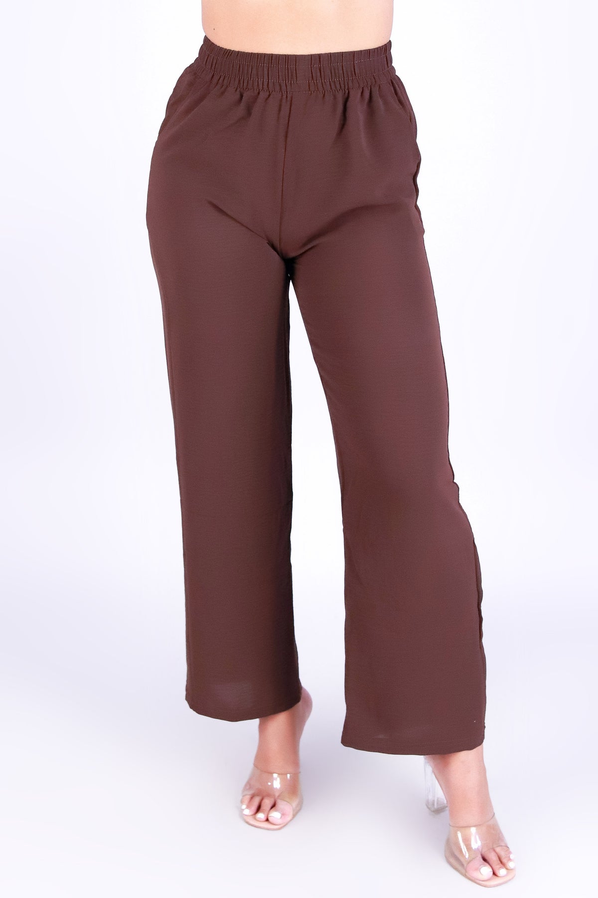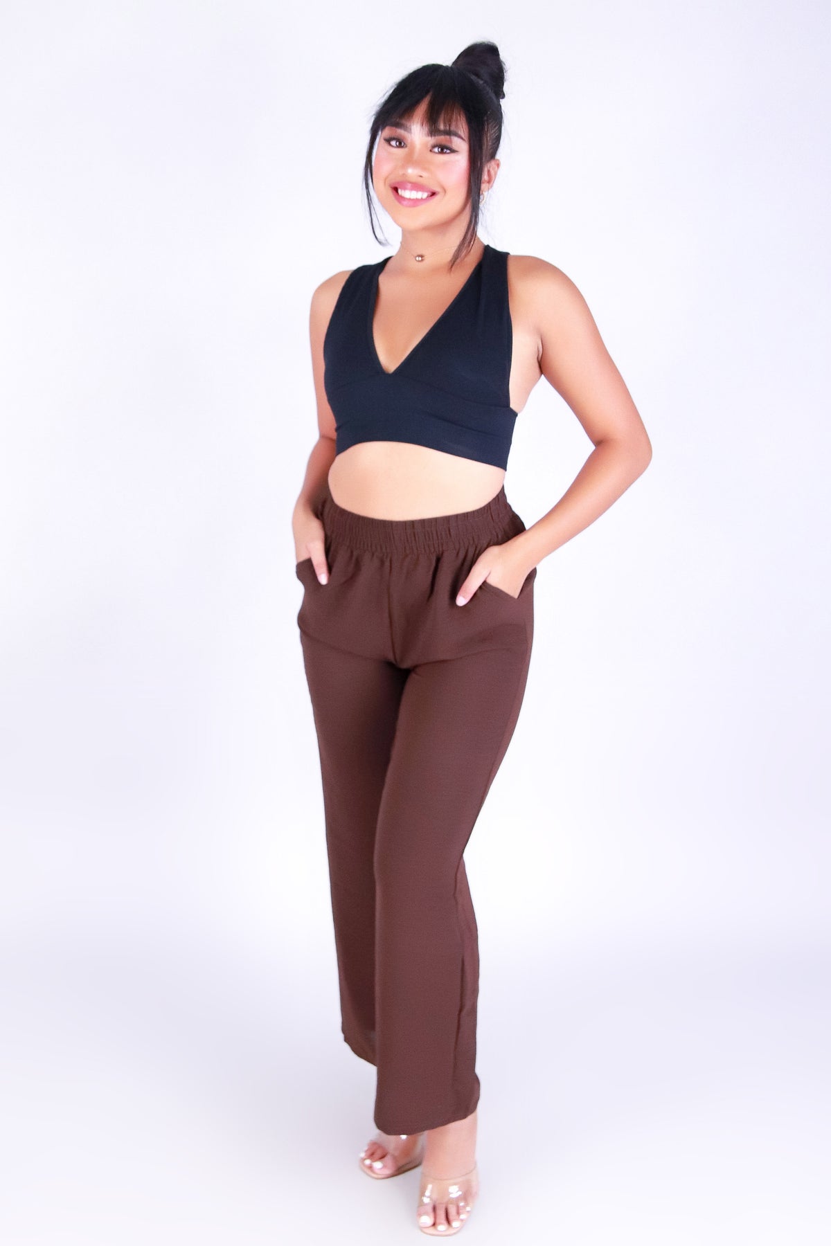 FEELING MYSELF PANTS is available in color DARK BROWN and in size SMALL, MED, LARGE.