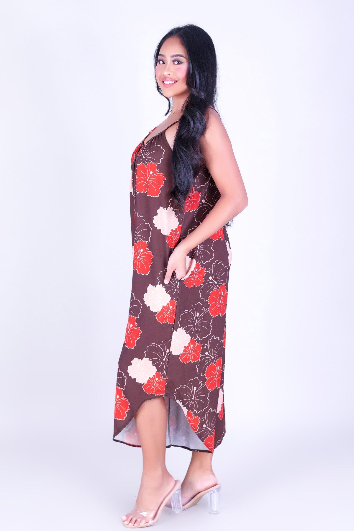 MULTI ALOALO NO WAIST JUMPSUIT is available in color BROWN and in size SMALL, MED, LARGE, XL.