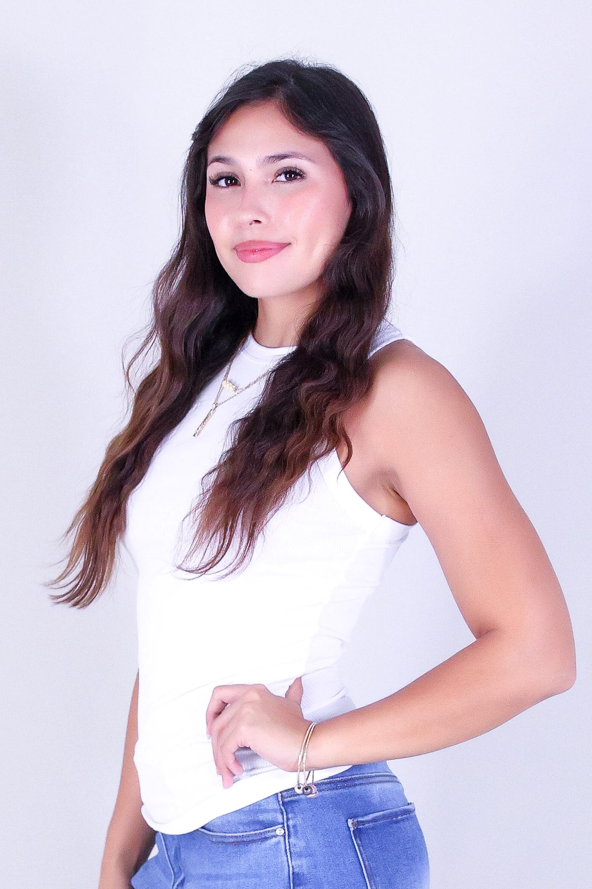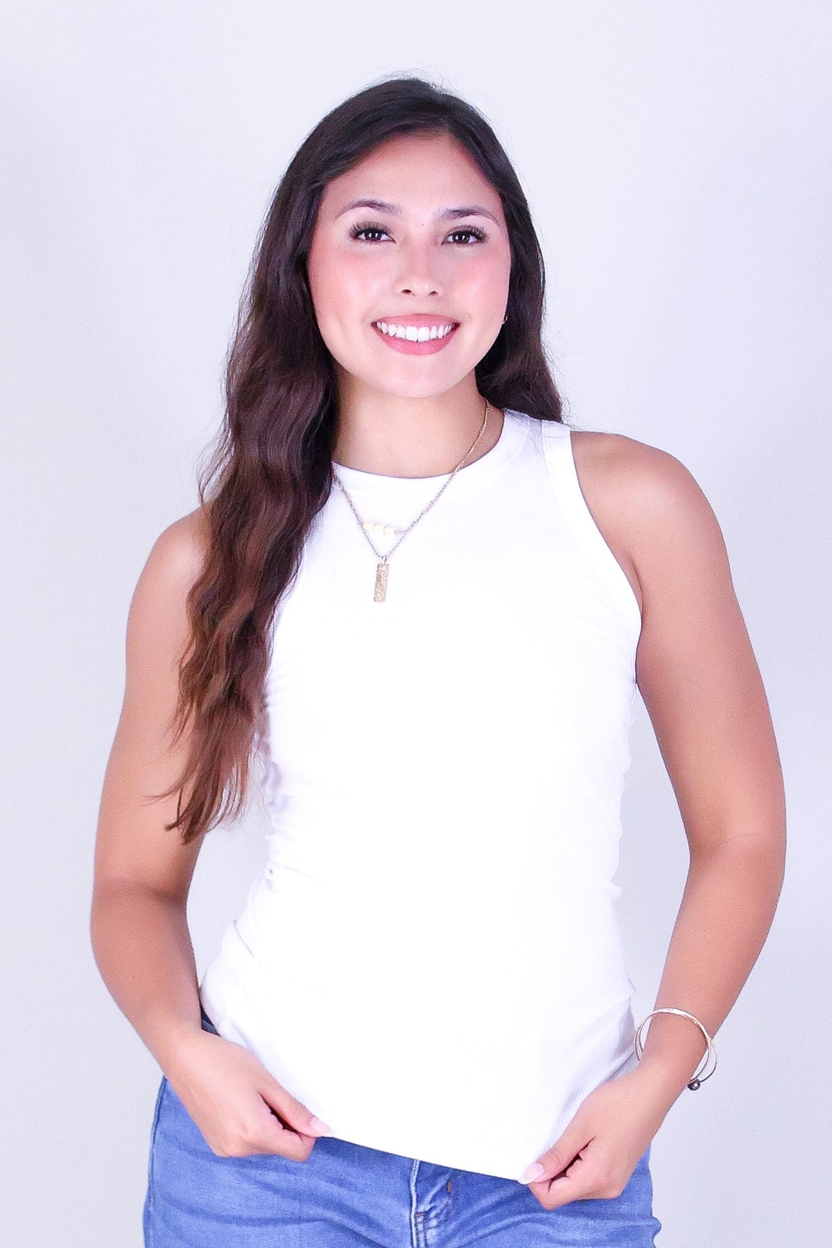 THINK ABOUT IT TOP is available in color WHITE and in size SMALL, MED, LARGE.