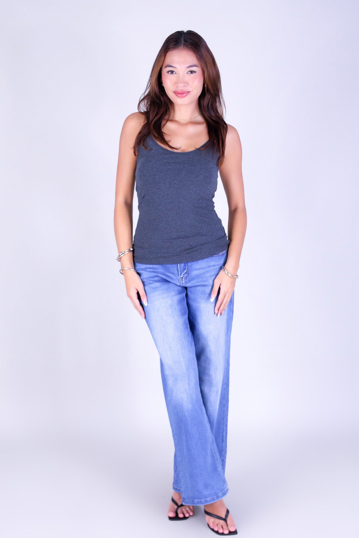 ALL OF A SUDDEN CAMI is available in color CHARCOAL and in size SMALL, MED, LARGE.