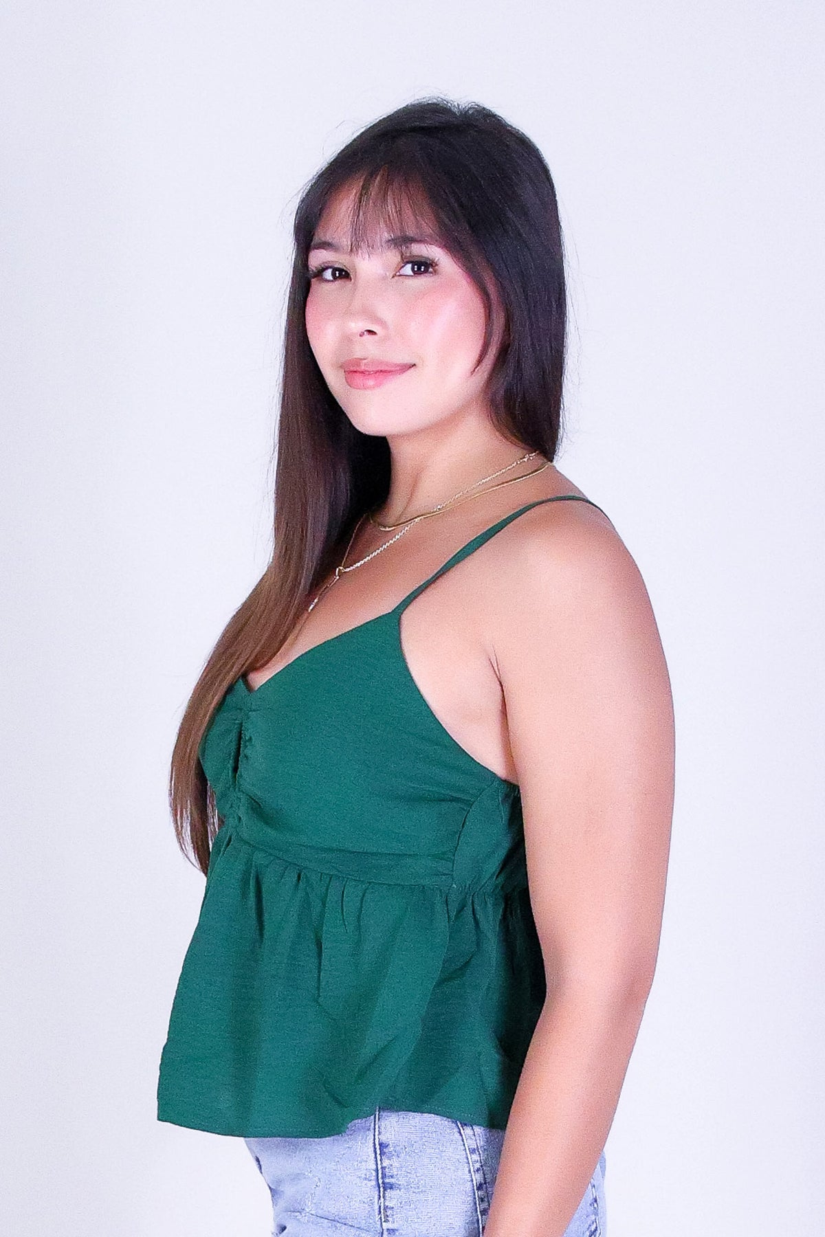 PEPPY CHIC TOP is available in color HUNTER and in size SMALL, MED, LARGE.