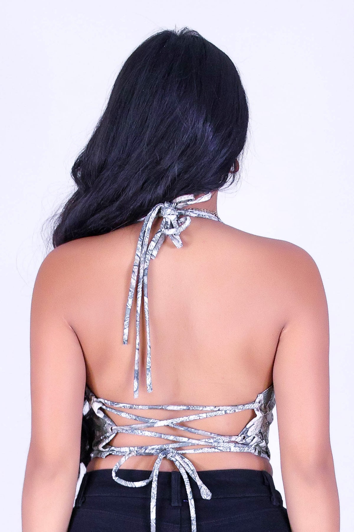 HAWAII JERSEY HALTER TOP is available in color CAMO and in size SMALL, MED, LARGE.