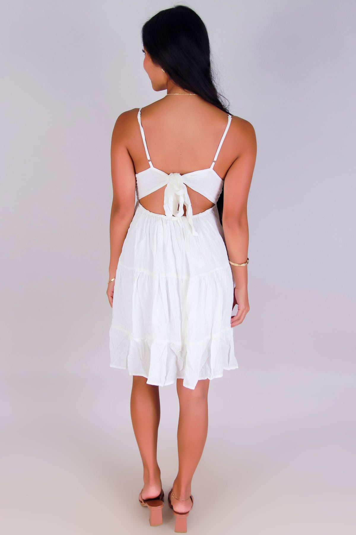 SURE THING DRESS is available in color WHITE and in size SMALL, MED, LARGE.