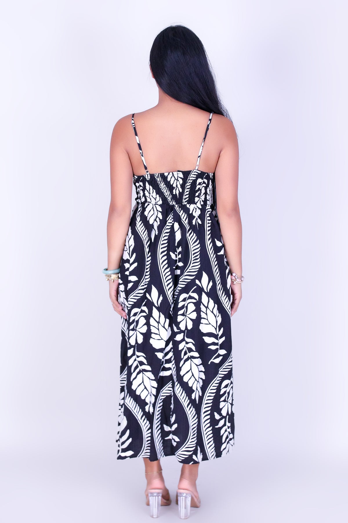 FLORAL FANTASY MAXI DRESS is available in color BLACK and in size SMALL, MED, LARGE.