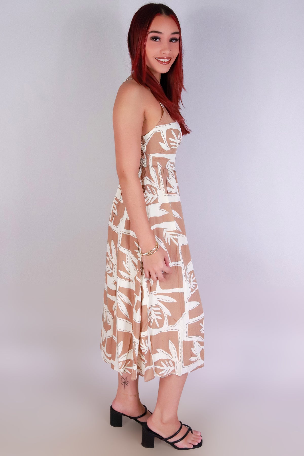 WEEKEND GETAWAY DRESS is available in color TAUPE and in size SMALL, MED, LARGE.