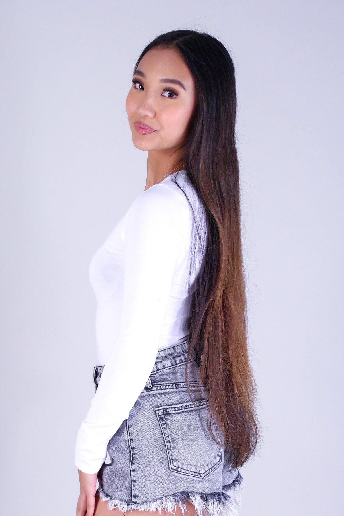 DAILY MUSE LONG SLEEVE TOP is available in color WHITE and in size SMALL, MED, LARGE.