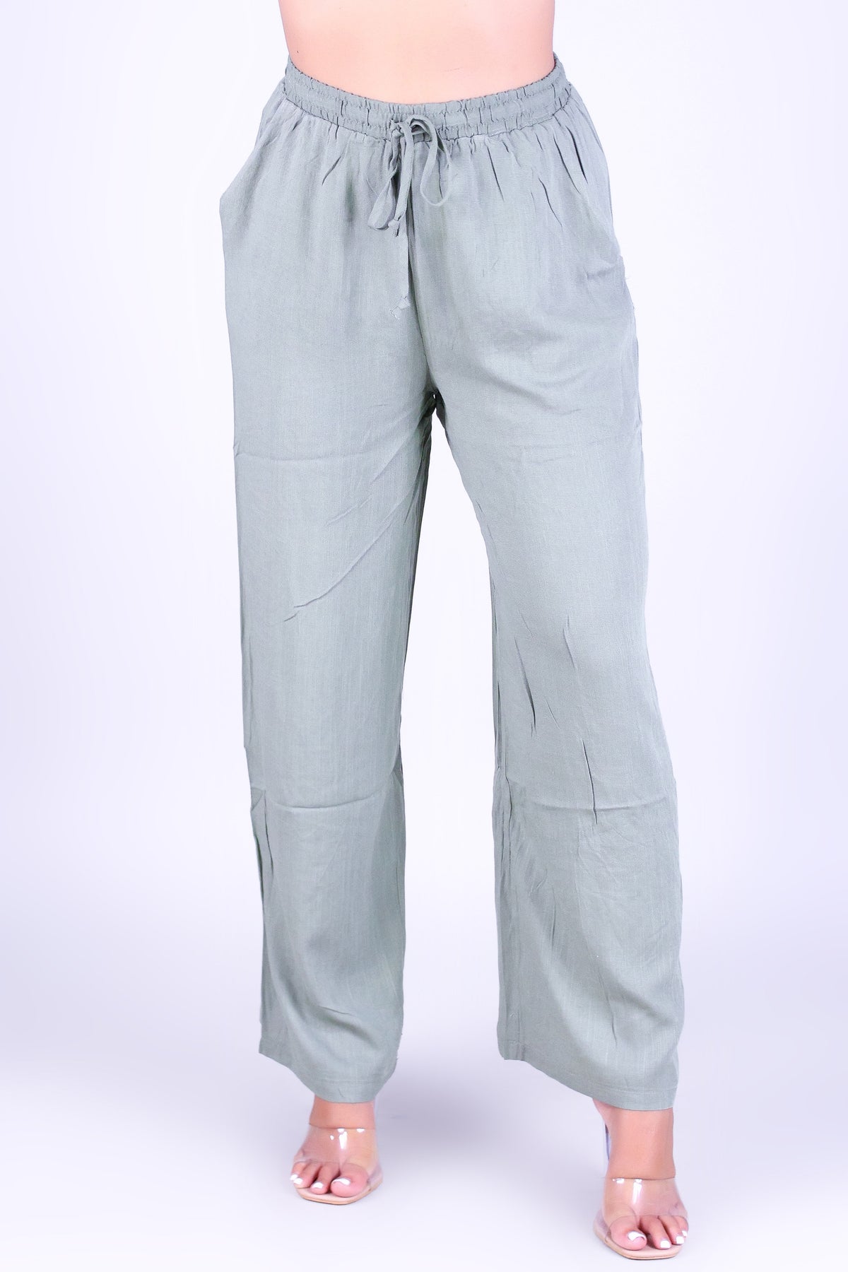 BARE BREEZE PANTS is available in color LT. OLIVE and in size SMALL, MED, LARGE.