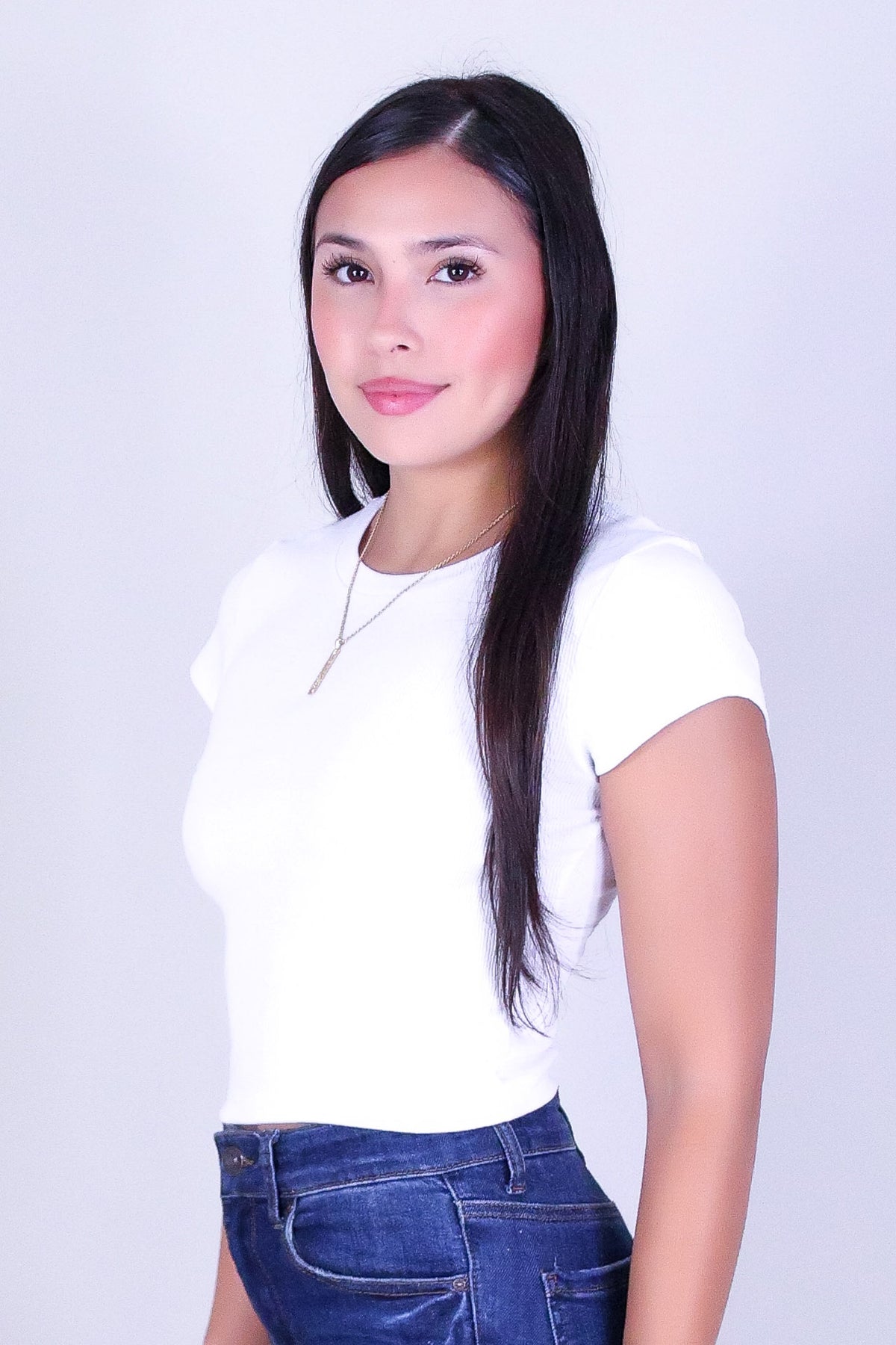 DAILY WEAR CROP TEE is available in color WHITE and in size SMALL, MED, LARGE.
