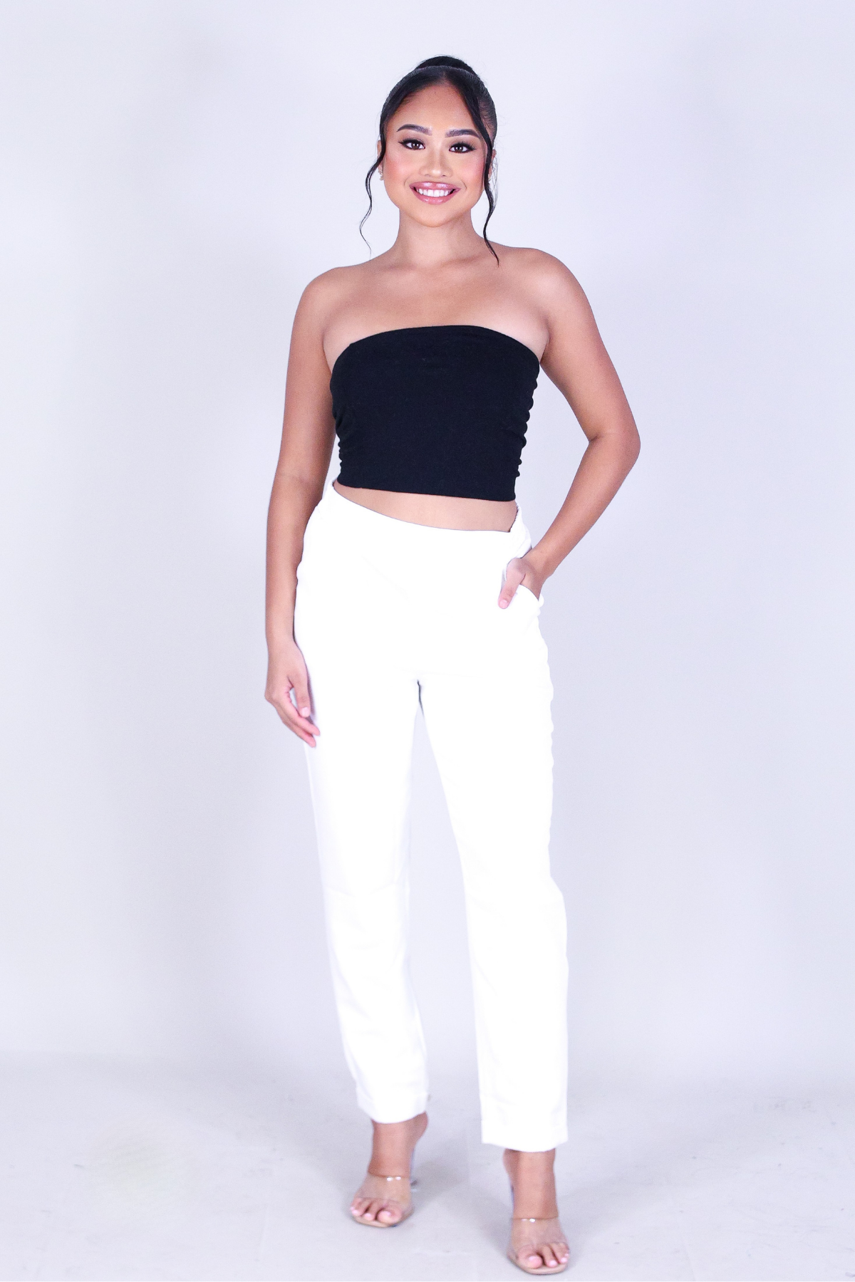YOU GOT IT DRESSY PANTS is available in color WHITE and in size SMALL, MED, LARGE.