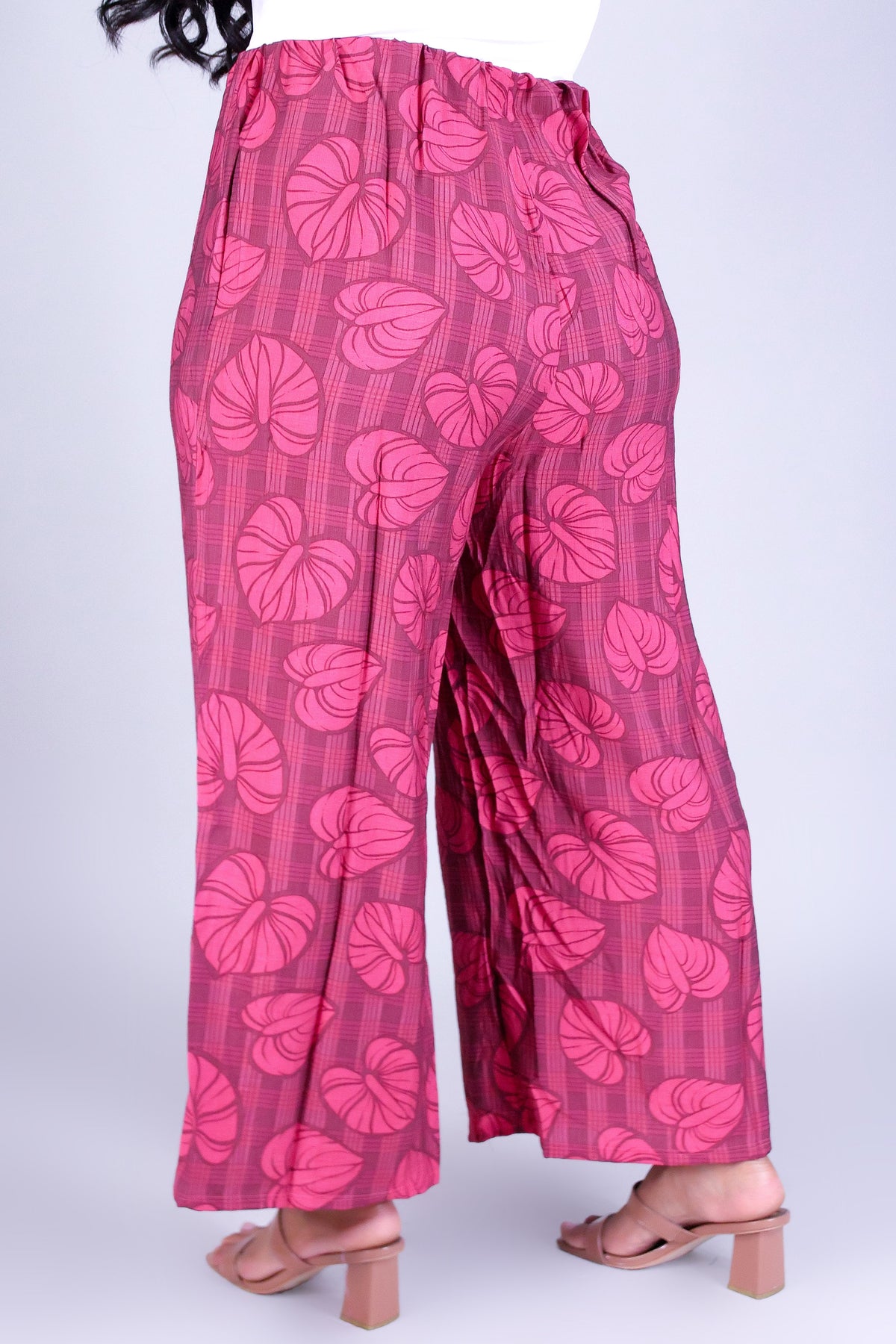 ANTHURIUM PALAKA WOVEN CAPRI'S is available in color BURGUNDY and in size 1X, 2X, 3X.