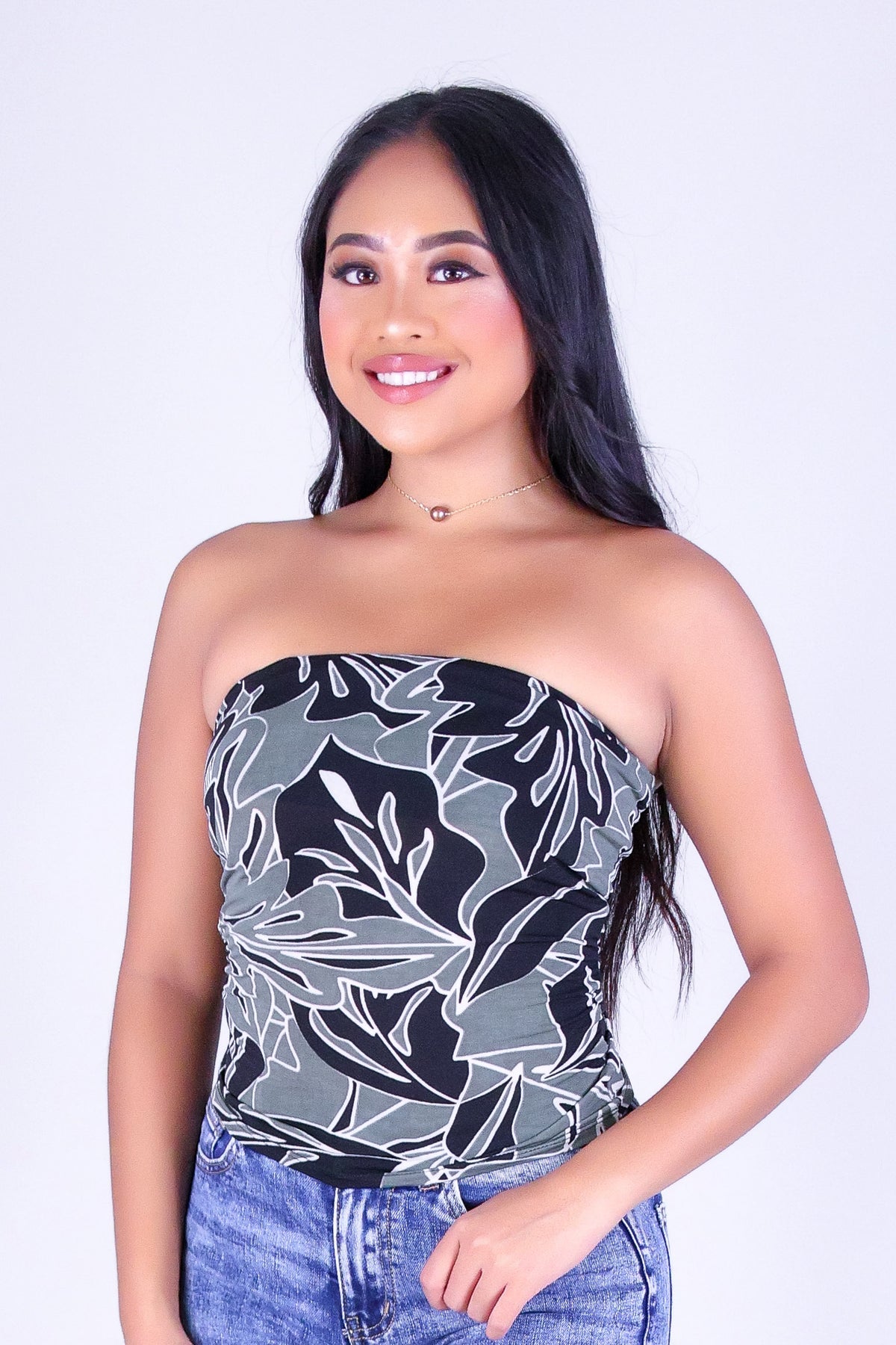 BLOOM EDIT TUBE TOP is available in color BLACK and in size SMALL, MED, LARGE.