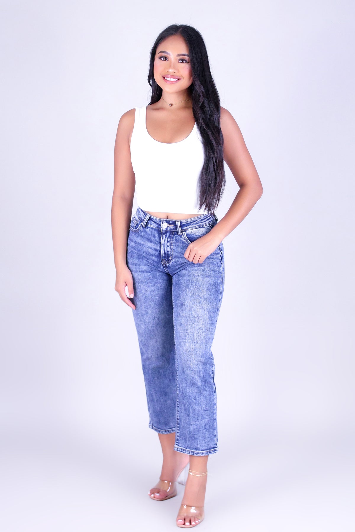 SCOOP ME UP CROP TANK is available in color WHITE and in size S/M, M/L.