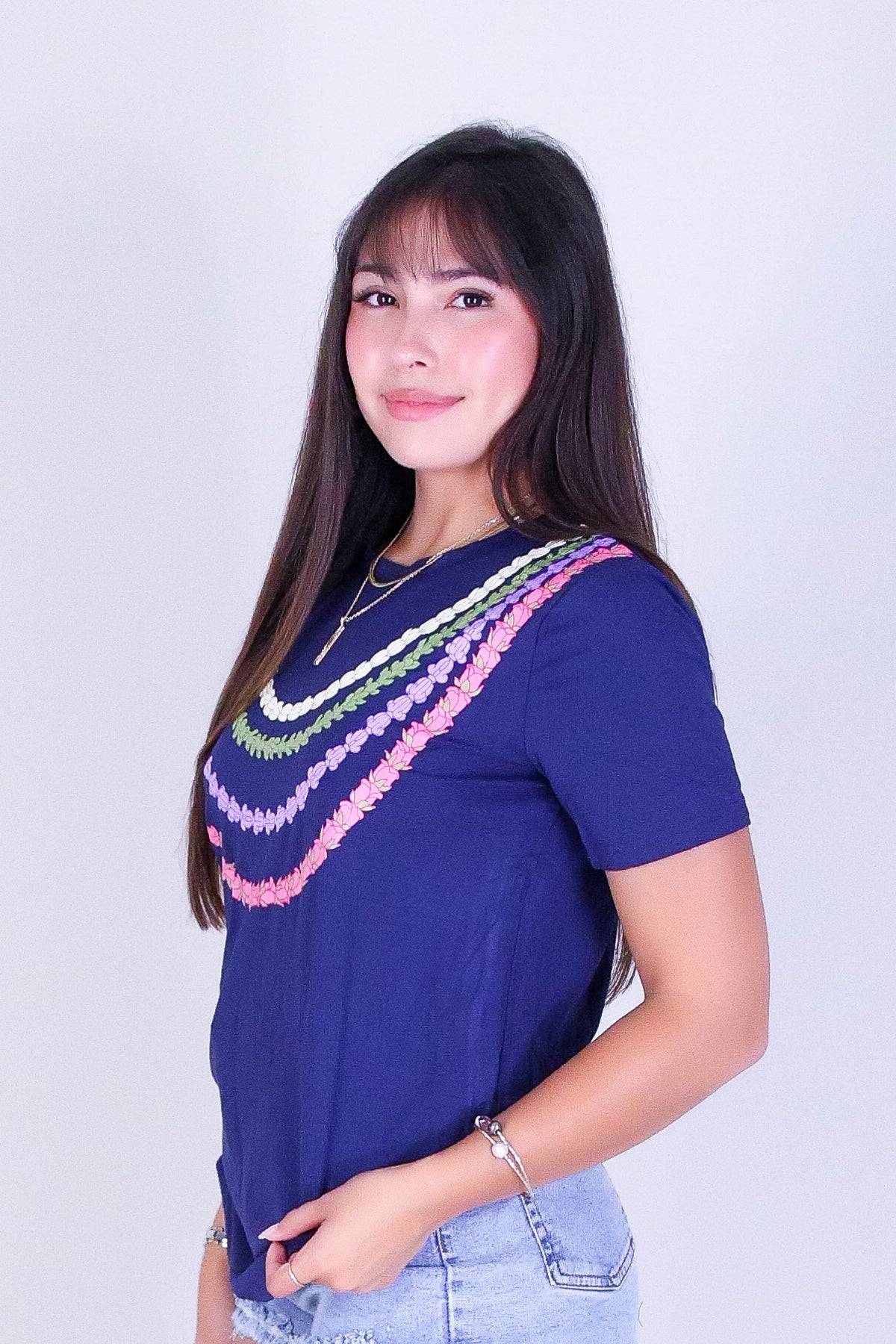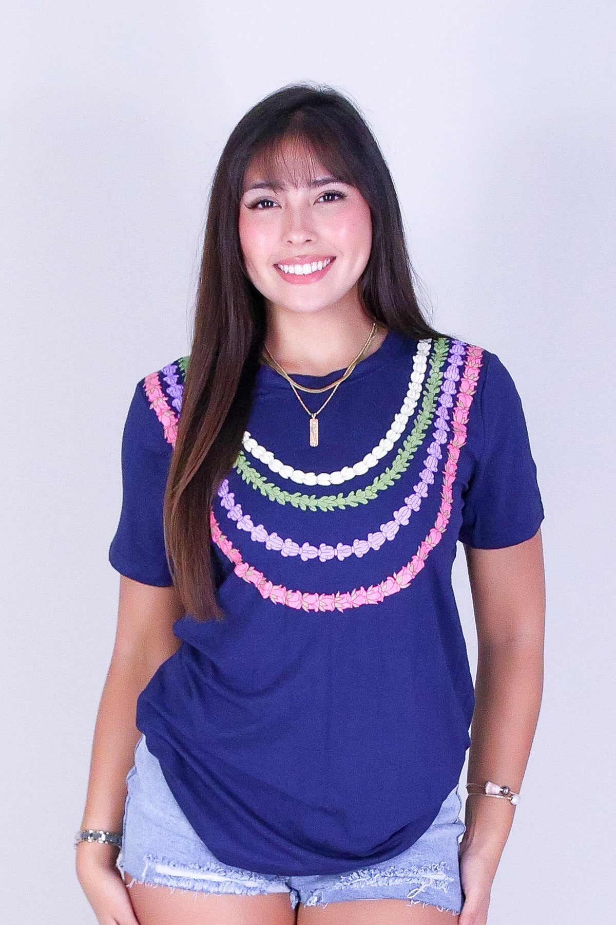 MULTI LEI TEE is available in color NAVY and in size SMALL, MED, LARGE, XL.