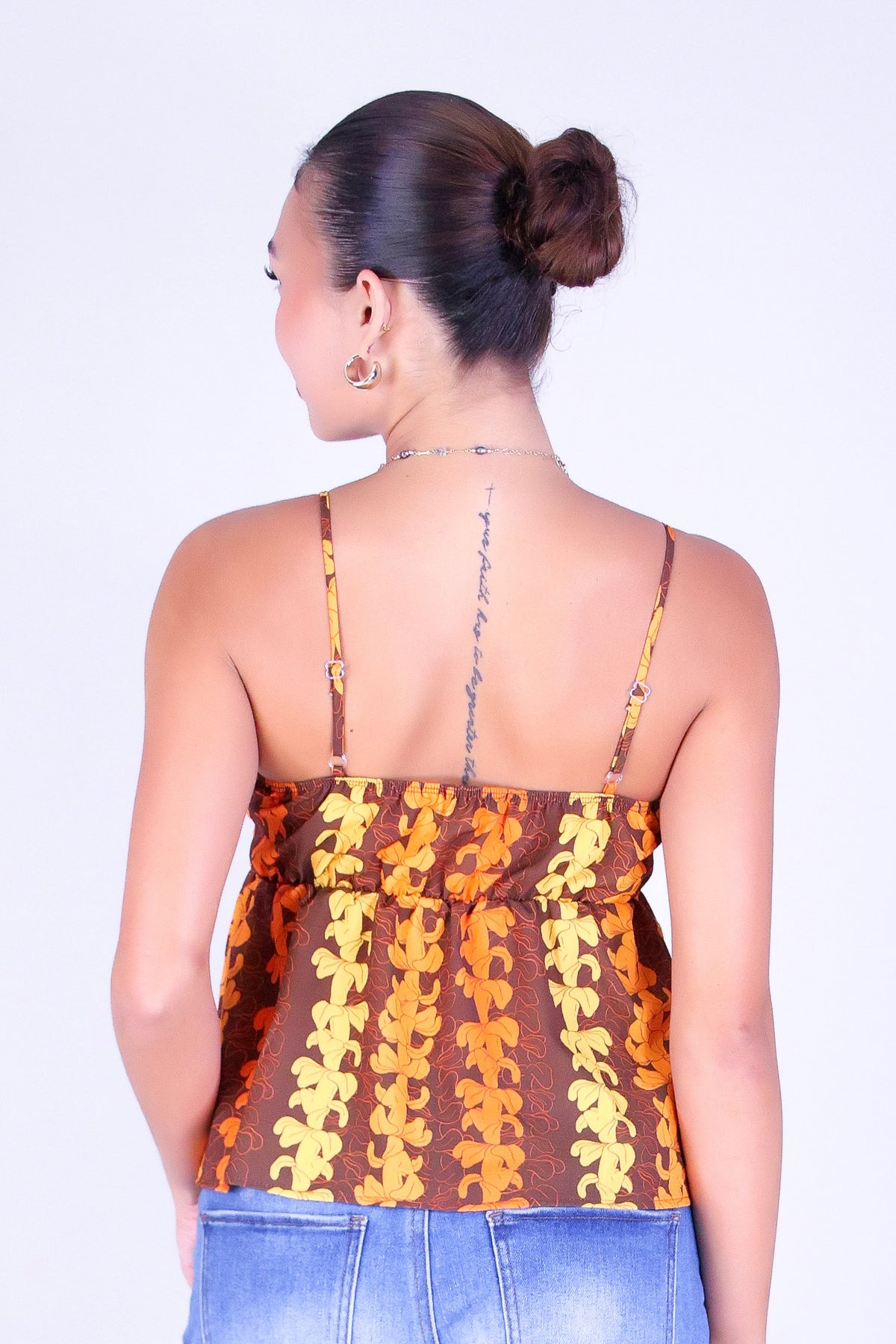 PUAKENIKENI OUTLINE BABYDOLL TOP is available in color BROWN and in size SMALL, MED, LARGE.