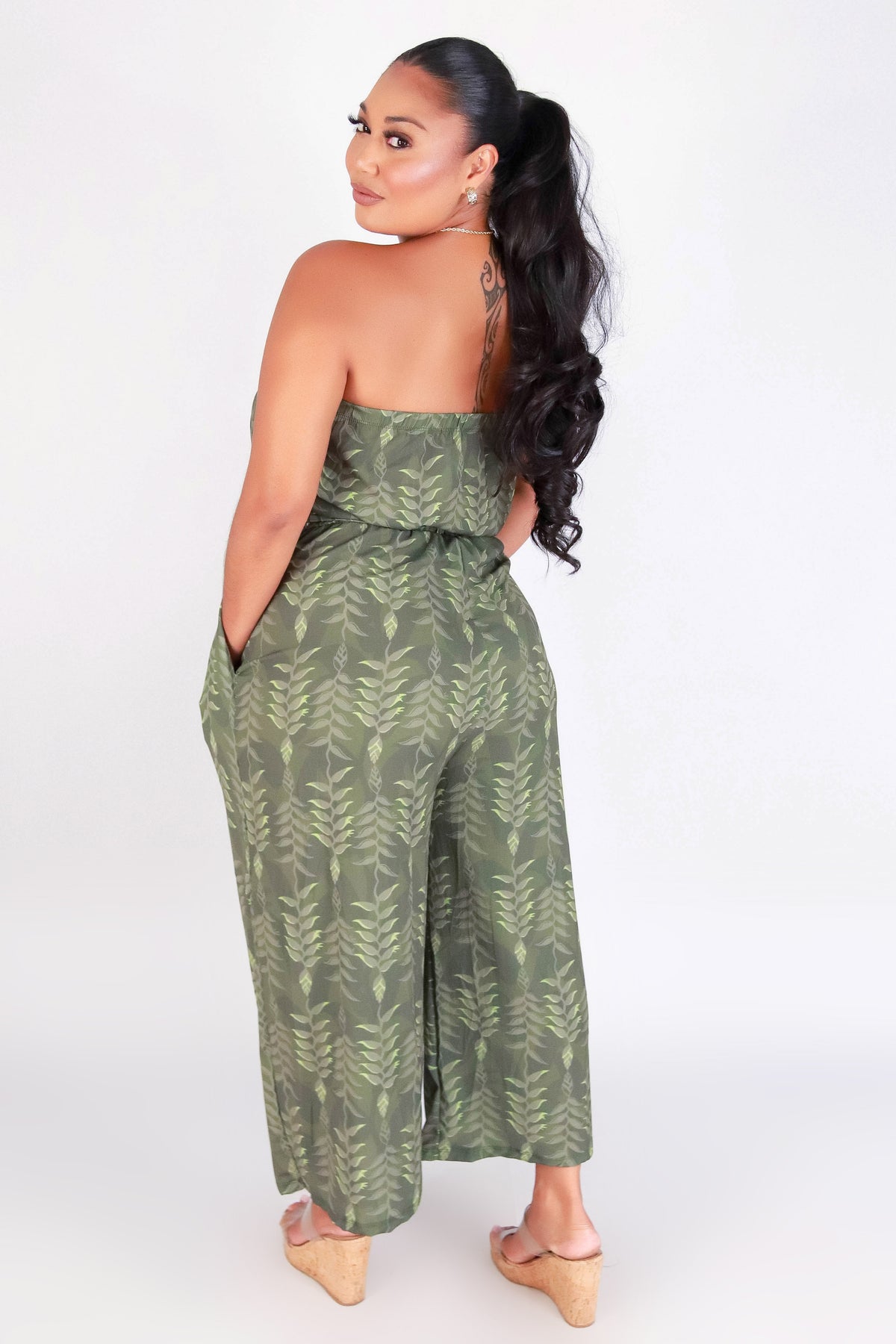 HELICONIA TUBE JUMPSUIT is available in color OLIVE and in size 1X, 2X, 3X.