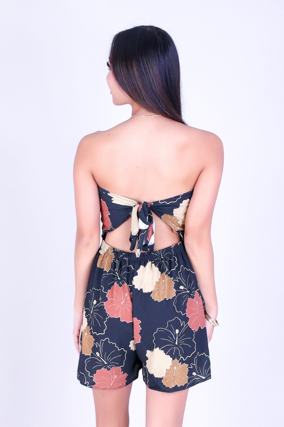 MULTI ALOALO TIE BACK ROMPER is available in color BLACK and in size SMALL, MED, LARGE, XL.