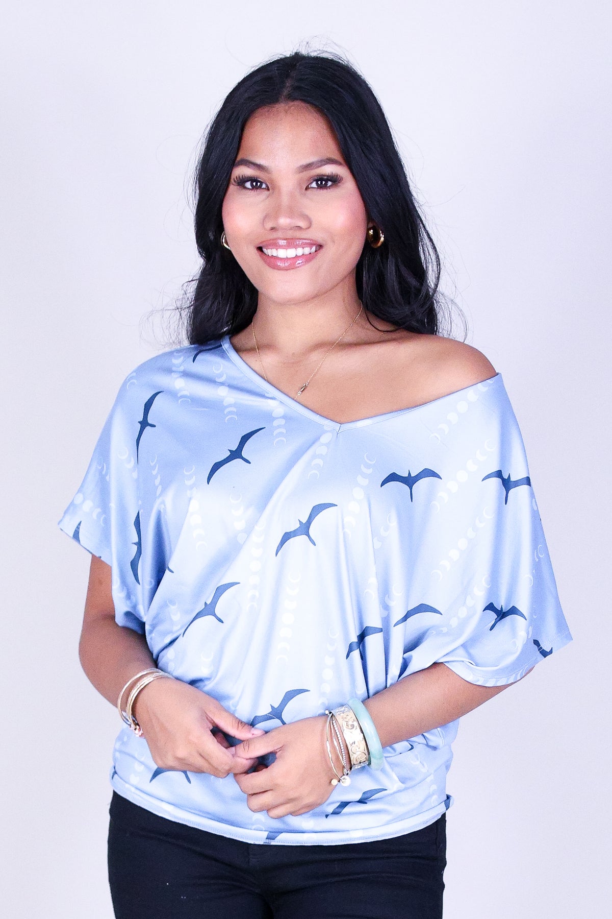 IWA MOON DOLMAN TOP is available in color LIGHT BLUE and in size SMALL, MED, LARGE, XL.