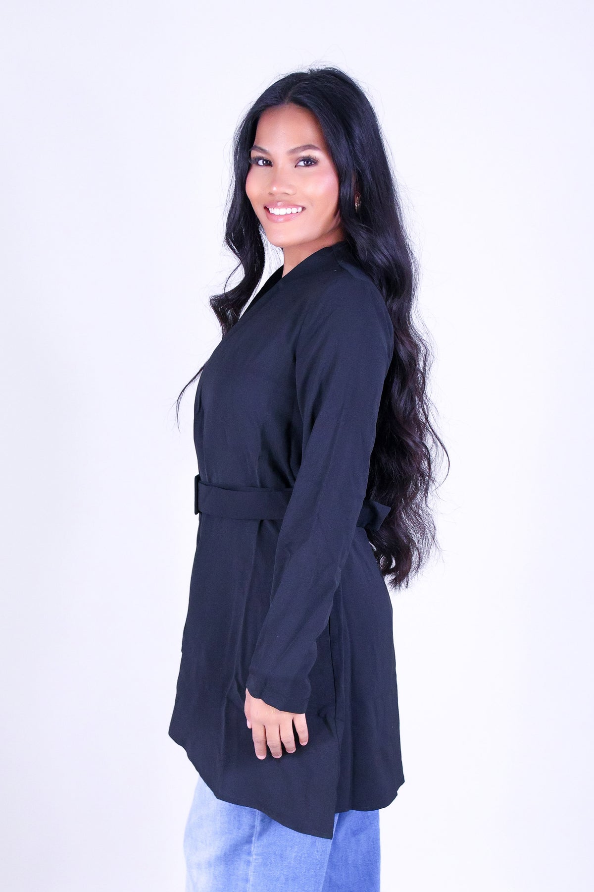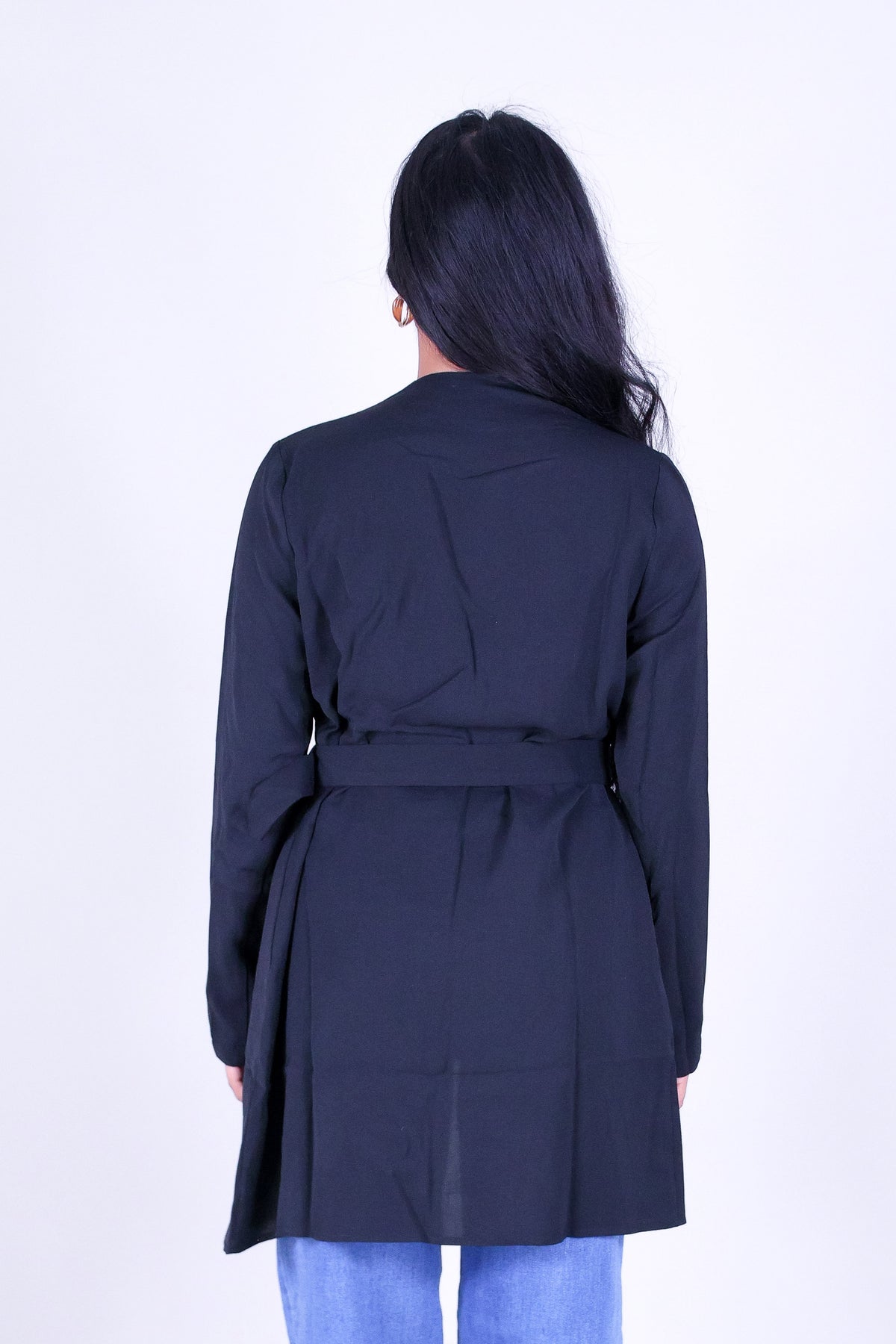 ELEVATED LONG JACKET is available in color BLACK and in size SMALL, MED, LARGE.