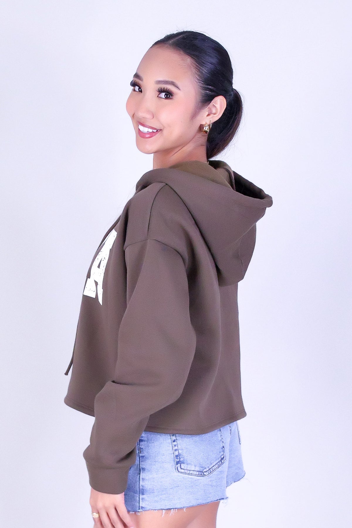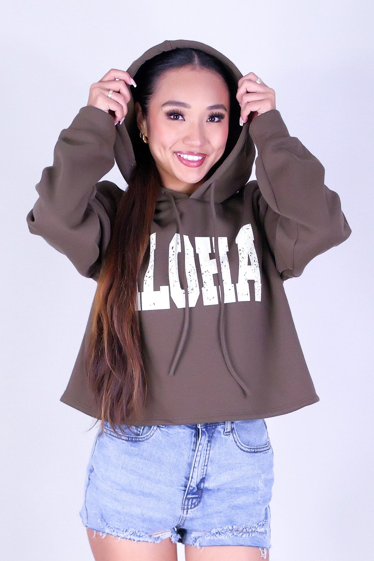 ALOHA HOODIE is available in color BROWN and in size SMALL, MED, LARGE.