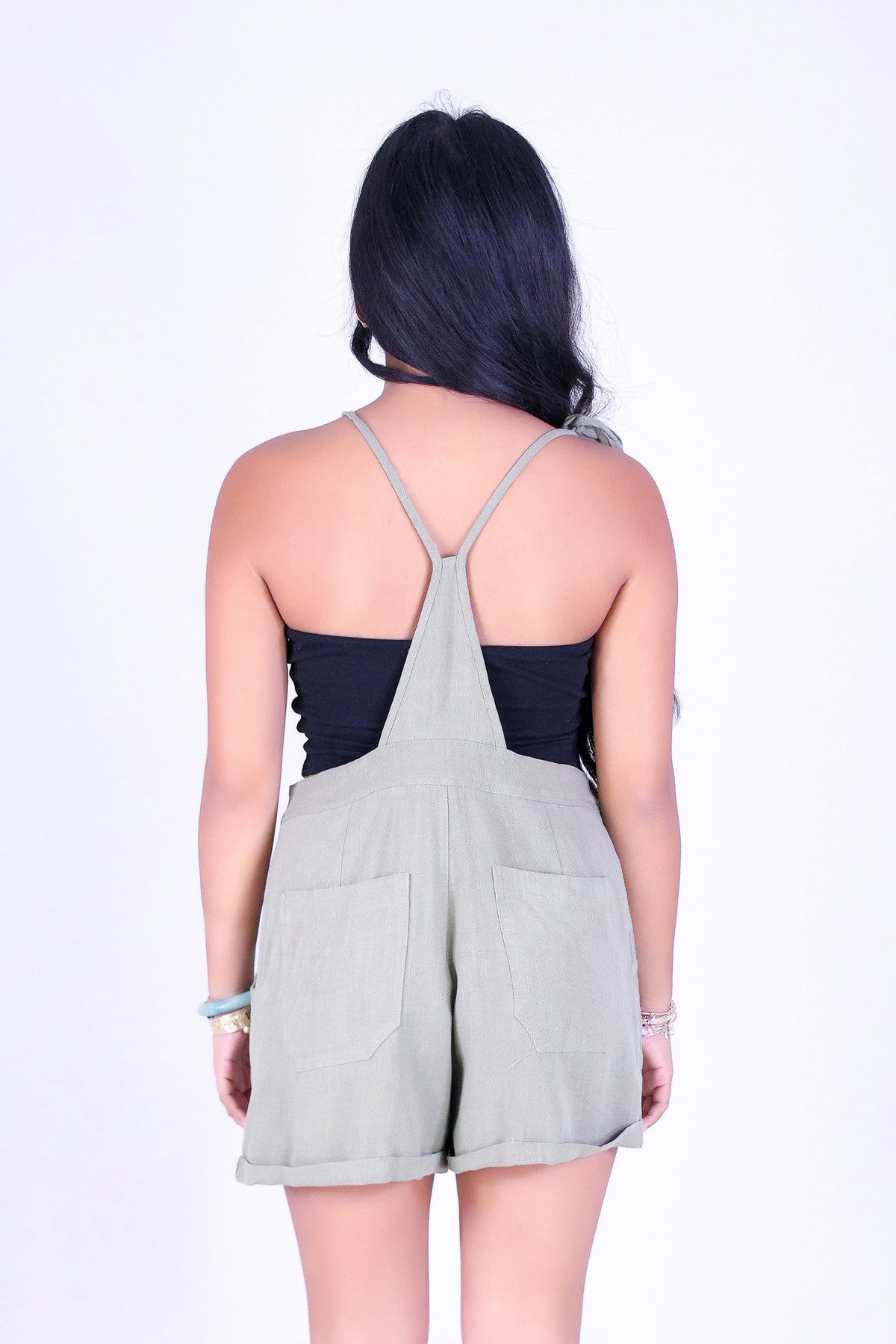 TAKE IT SERIOUS ROMPER is available in color OLIVE and in size SMALL, MED, LARGE.