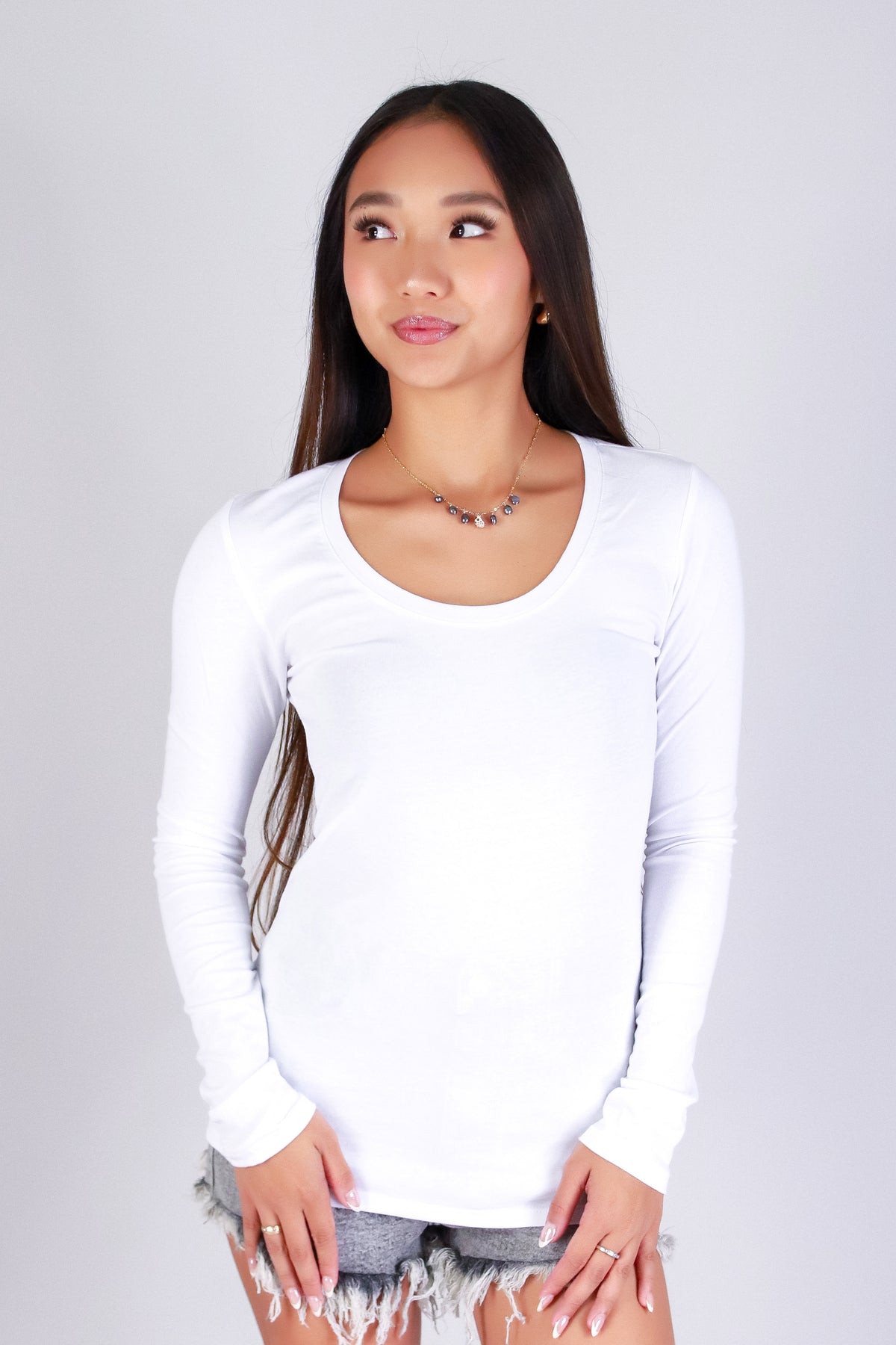 HOLD THAT THOUGHT LONG SLEEVE TOP is available in color WHITE and in size SMALL, MED, LARGE.