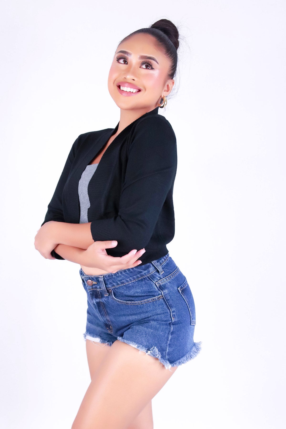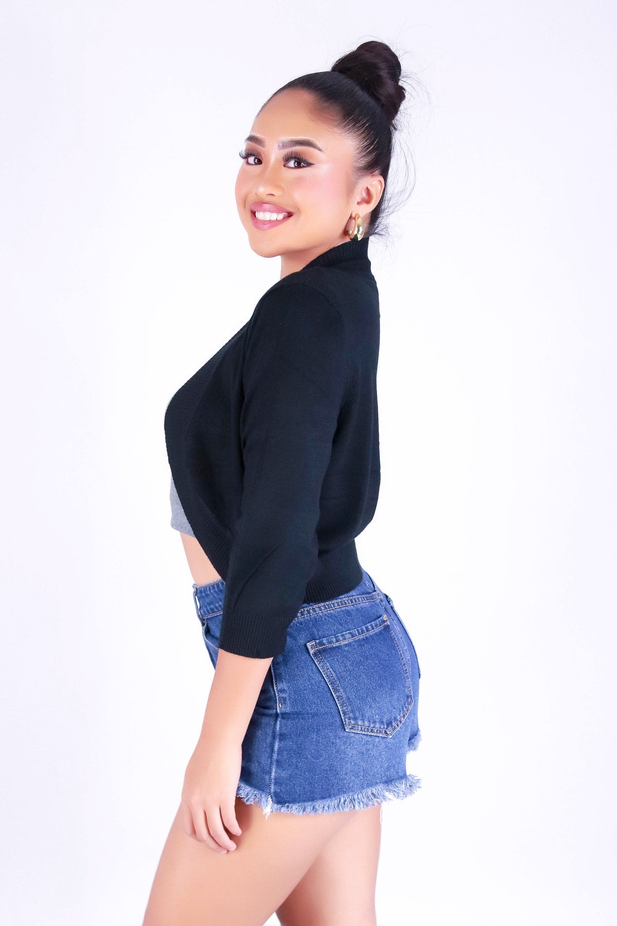 GIVE IDEAS BOLERO TOP is available in color BLACK and in size SMALL, MED, LARGE, XL.