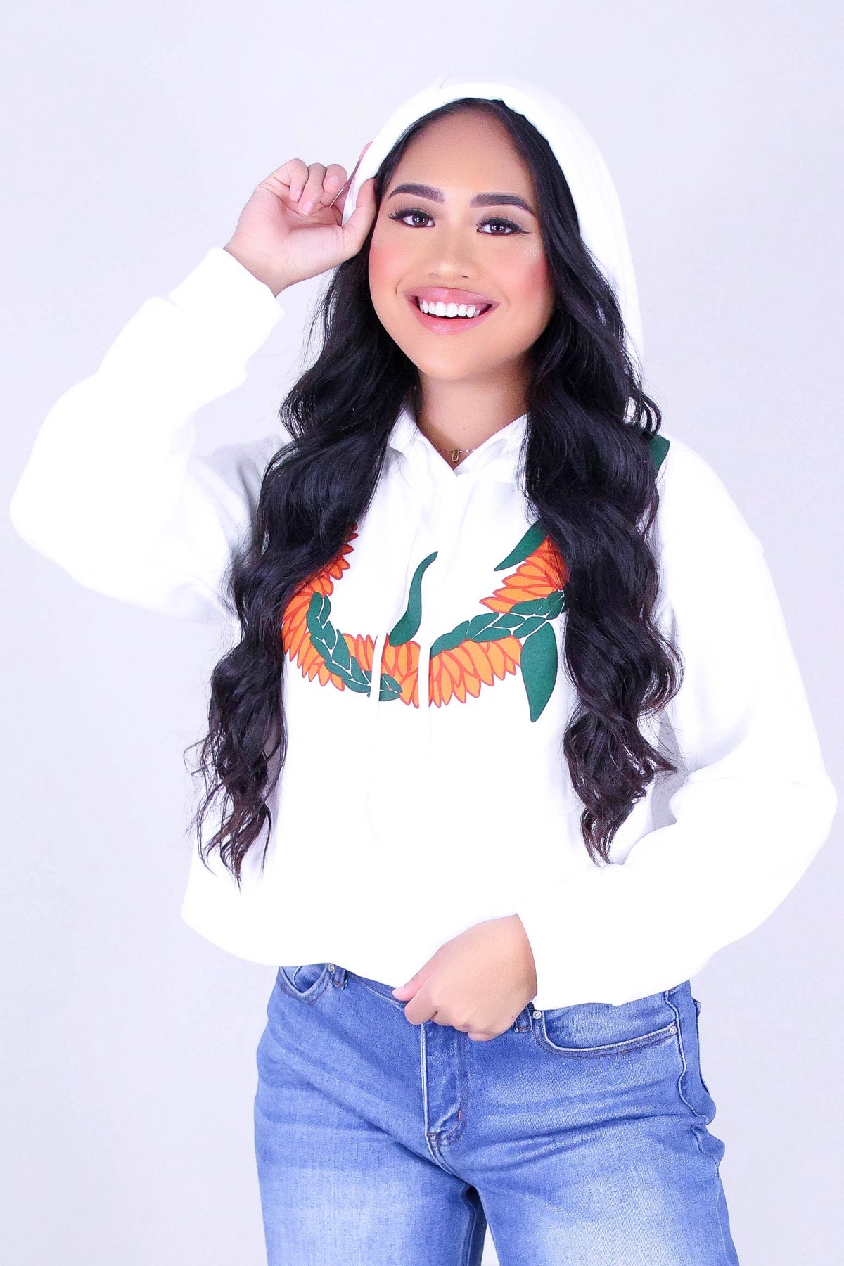 MAILE CIGAR LEI HOODIE is available in color OFF WHITE and in size SMALL, MED, LARGE.
