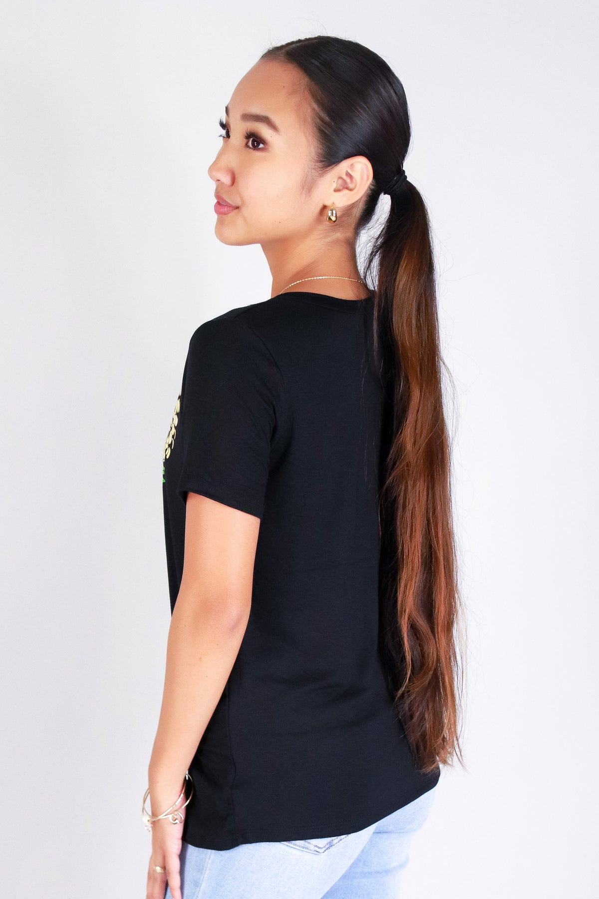 PUAKENIKENI MAILE LEI TEE is available in color BLACK and in size SMALL, MED, LARGE, XL.