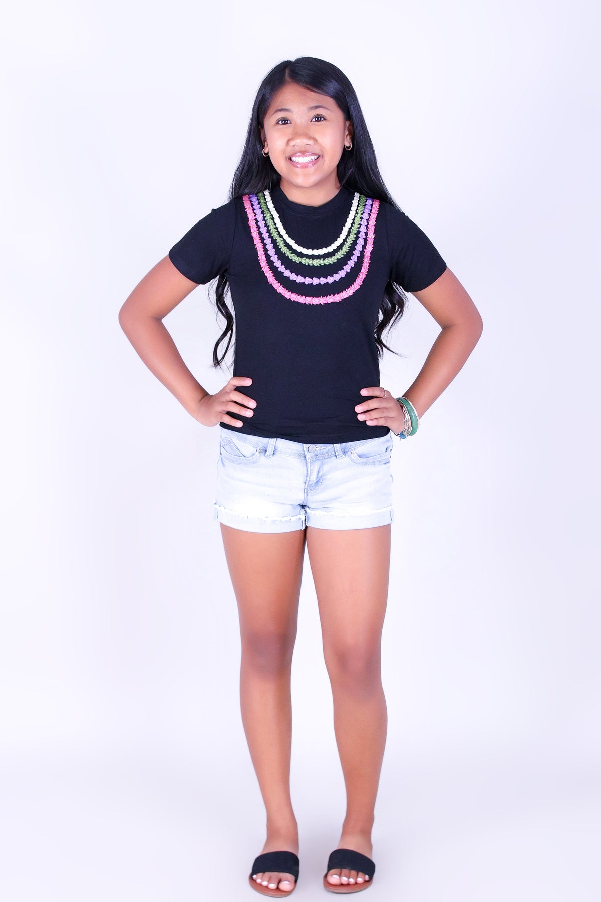 MULTI LEI TEE | KIDS SIZE 2-16 is available in color BLACK and in size 2T, 3T, 4T, 5, 6, 8, 10, 14, 6X.