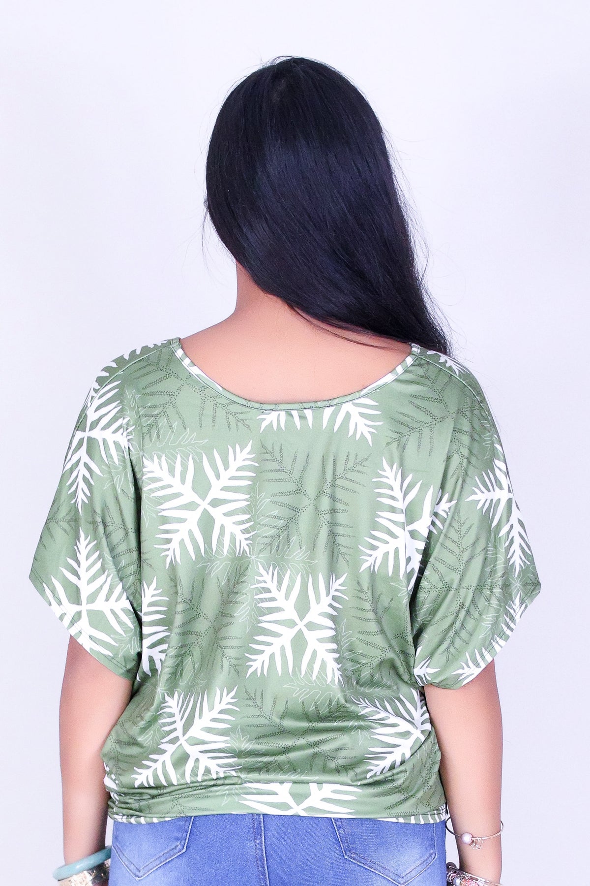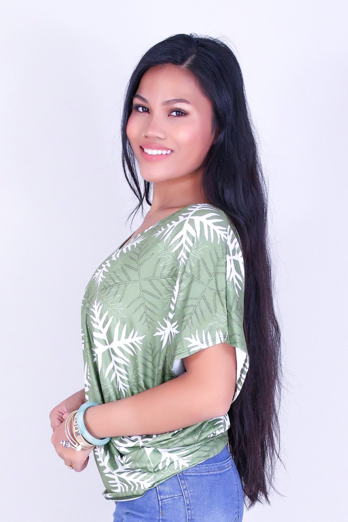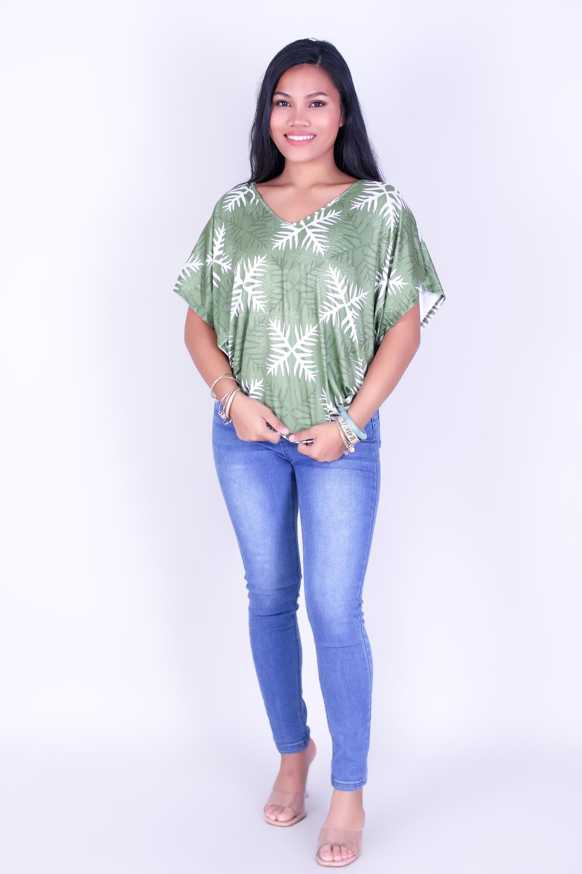 LAUAE QUILT DOLMAN TOP is available in color SAGE and in size SMALL, MED, LARGE, XL.