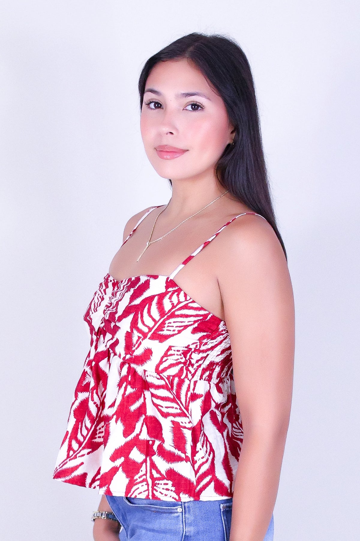 MOON GARDEN TOP is available in color RED and in size SMALL, MED, LARGE.