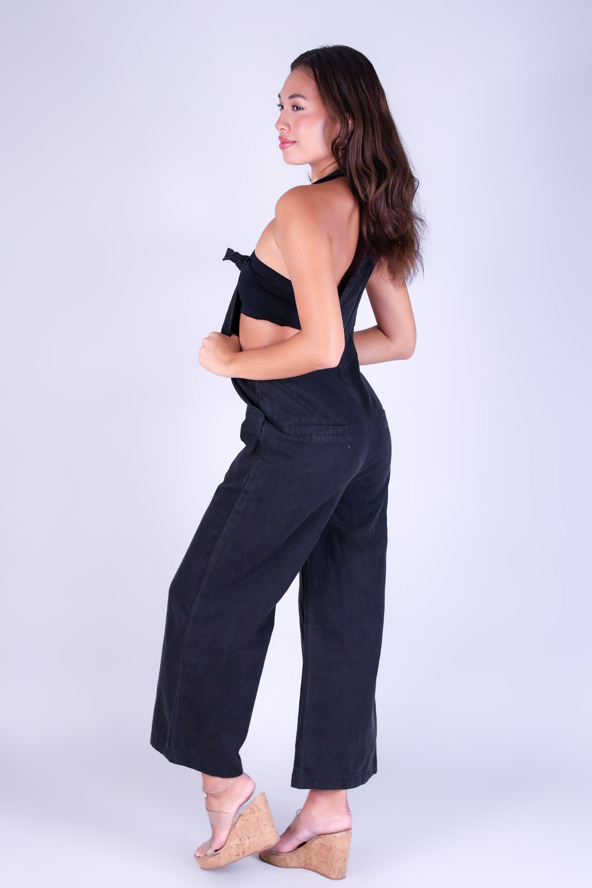 MODERN PLAY OVERALL JUMPSUIT is available in color BLACK and in size SMALL, MED, LARGE.
