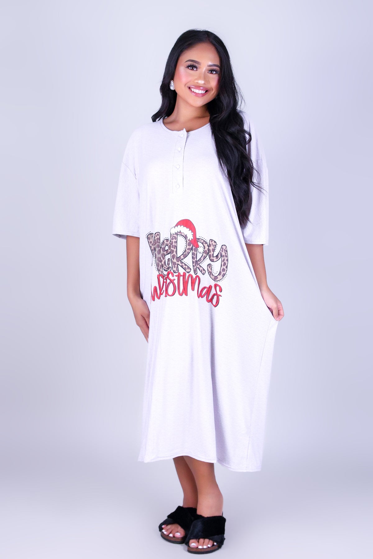 MERRY CHRISTMAS OVERSIZED NIGHTSHIRT PAJAMA is available in color OATMEAL.