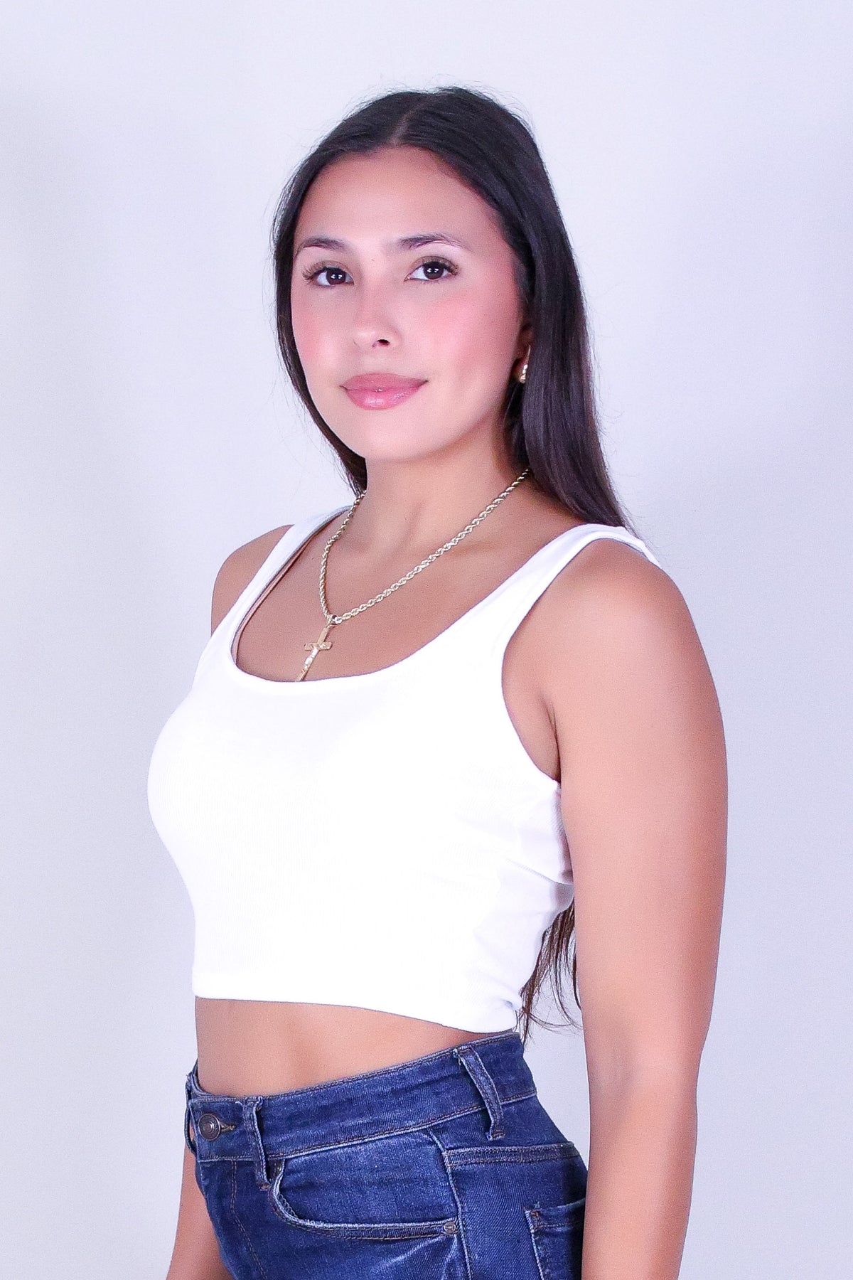 LUNA FLOW CROP TOP is available in color WHITE and in size SMALL, MED, LARGE.