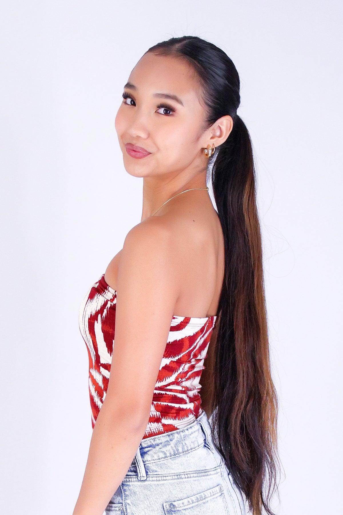 WATERCOLOR PARADISE CROP TUBE TOP is available in color RUST and in size SMALL, MED, LARGE.