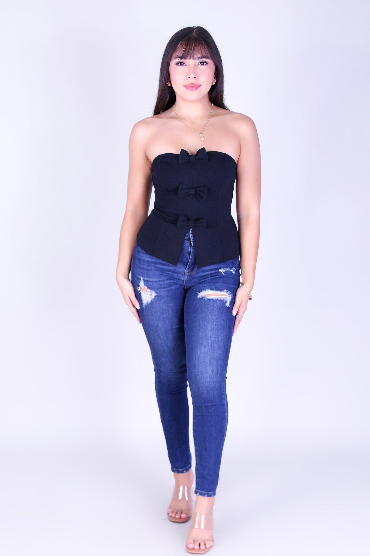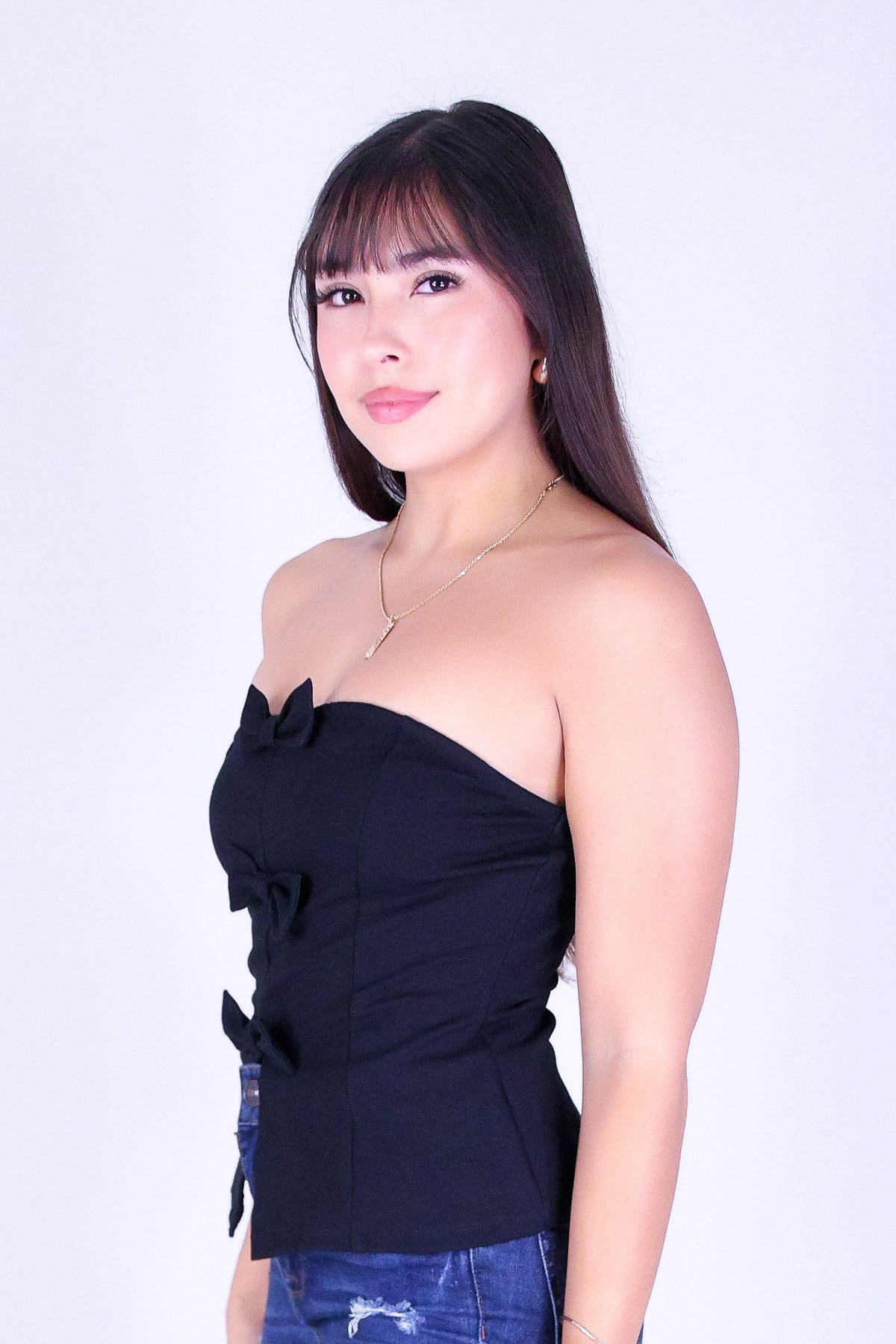 TIED TO YOU TUBE TOP is available in color BLACK and in size SMALL, MED, LARGE.