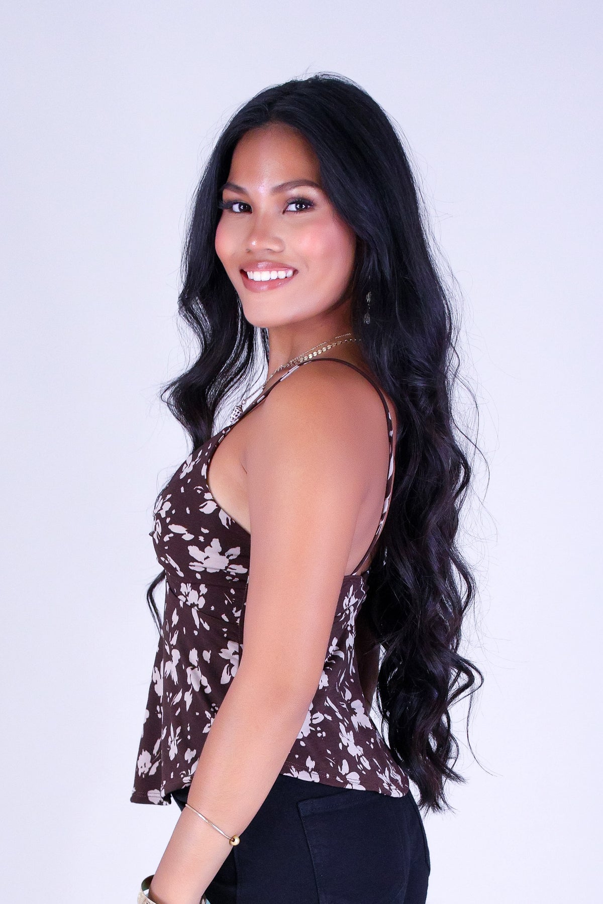 BLUSH GARDEN TOP is available in color BROWN and in size SMALL, MED, LARGE.