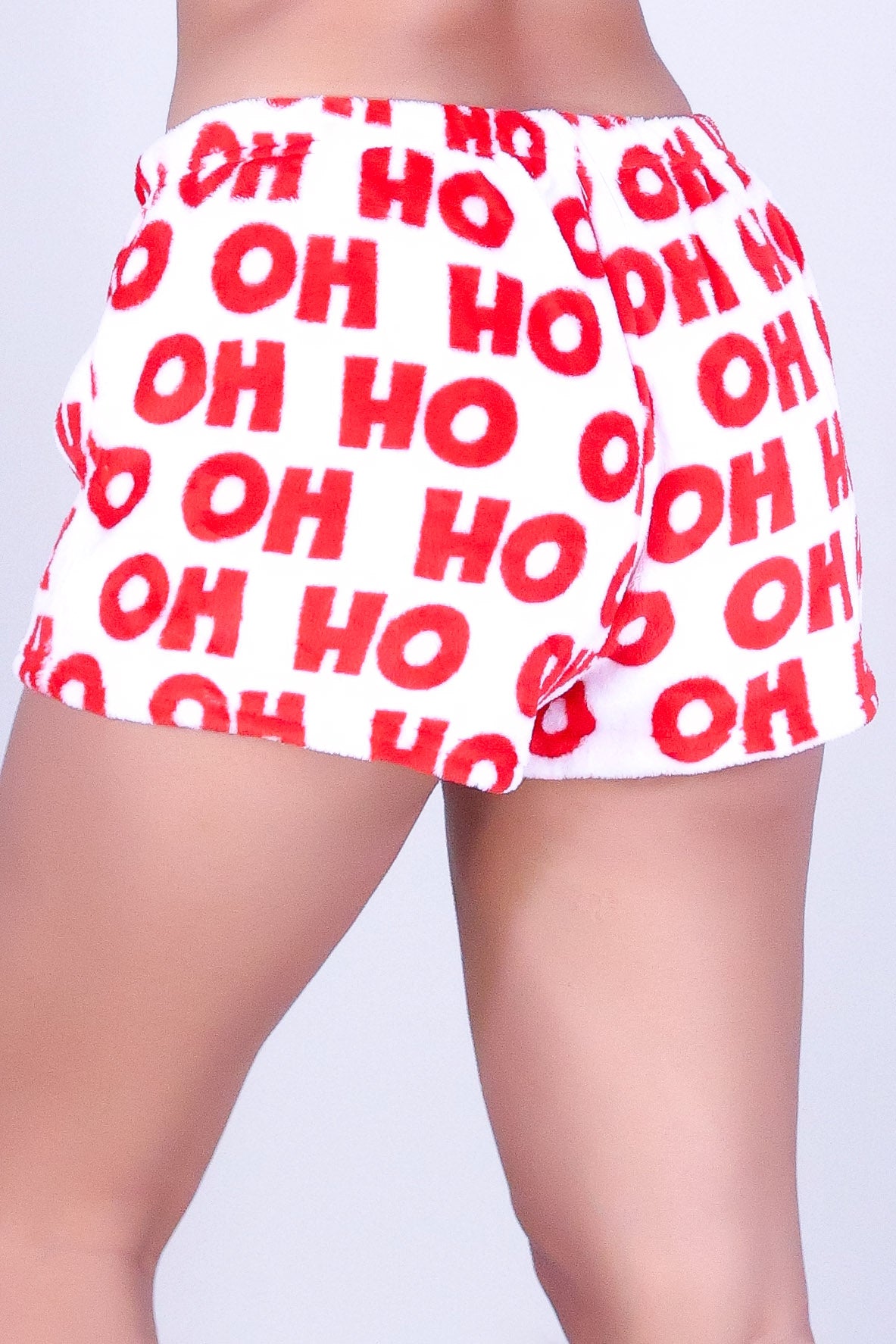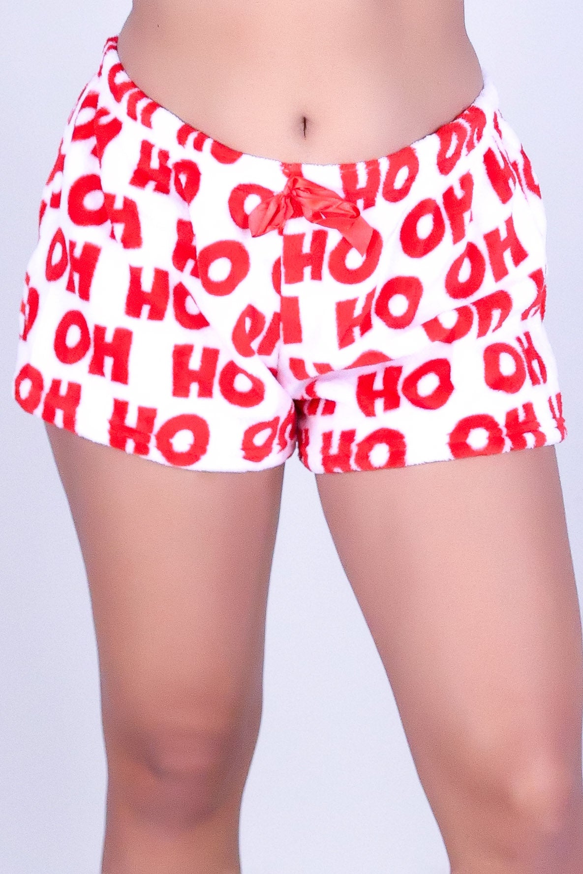 HO HO HO PAJAMA SHORTS is available in color WHITE/RED and in size SMALL, MED, LARGE, XL.
