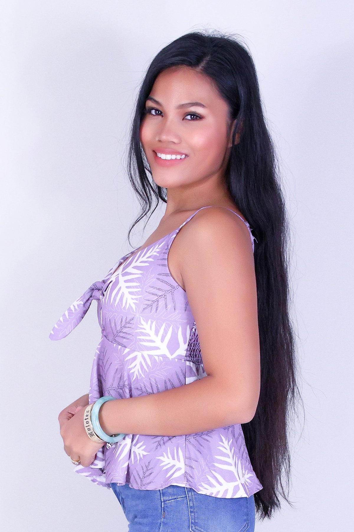 LAUAE QUILT TIE FRONT TOP is available in color LAVENDER and in size SMALL, MED, LARGE.