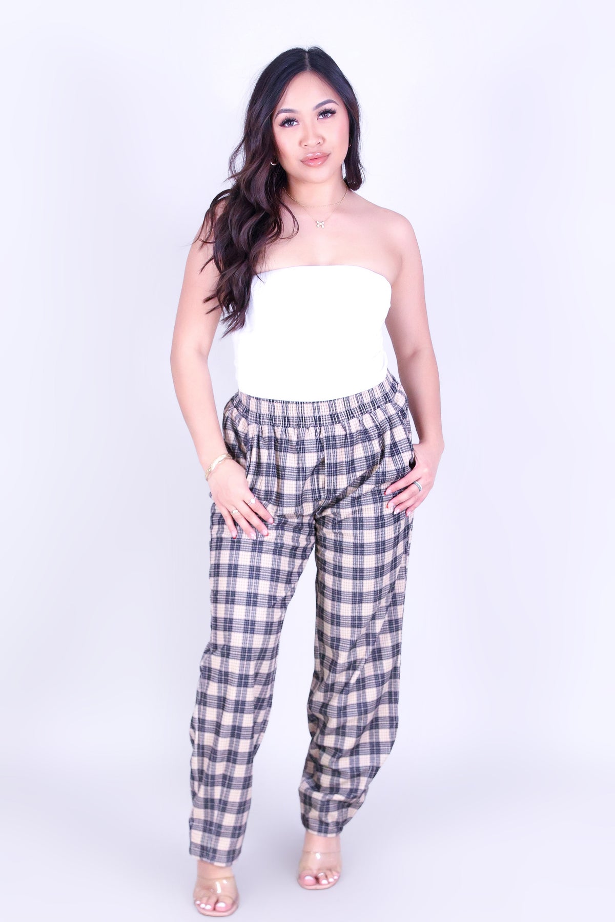 CITY CHECKS PANTS is available in color BLACK and in size SMALL, MED, LARGE.