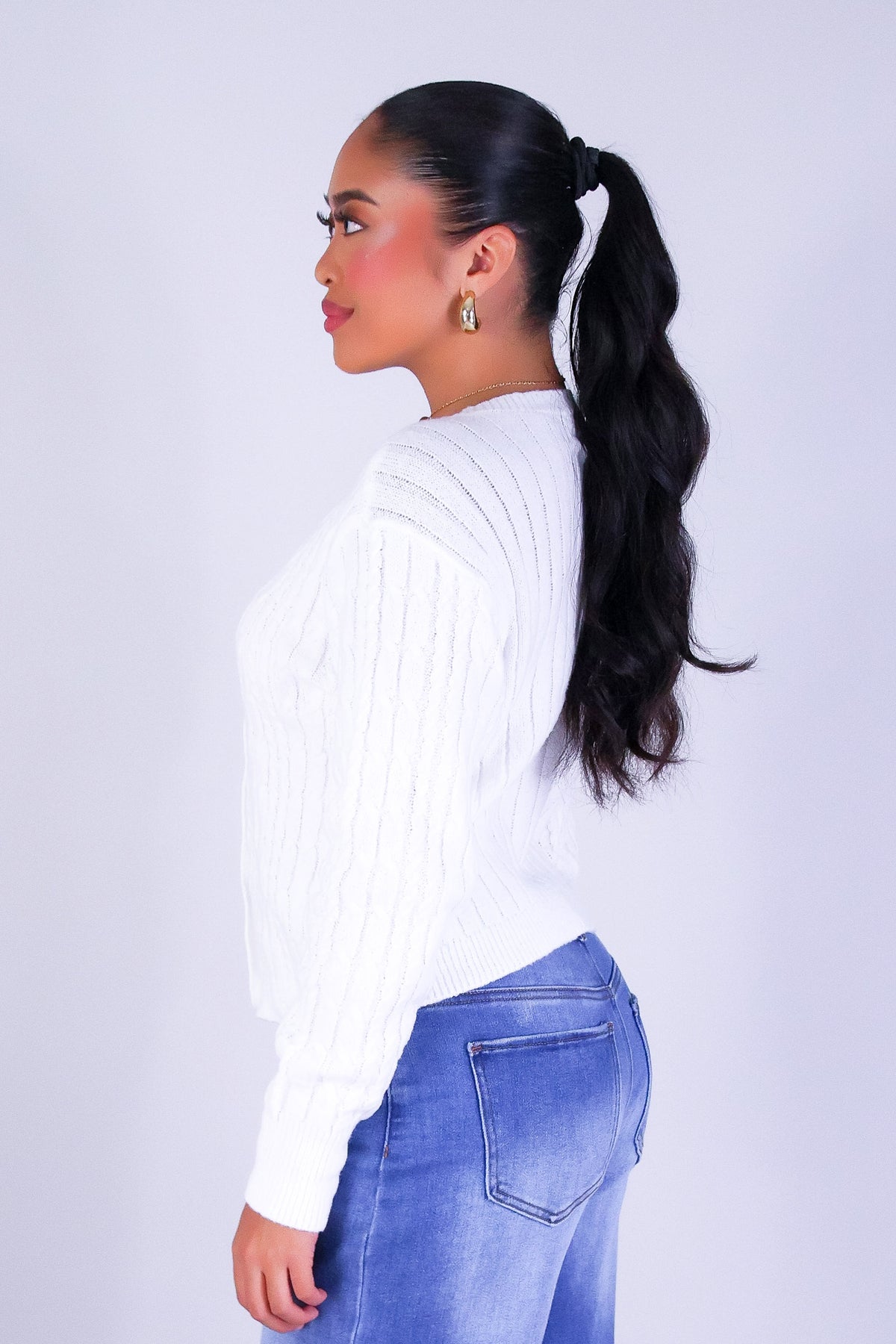 FOR YOU ALWAYS SWEATER is available in color IVORY and in size SMALL, MED, LARGE, XL.