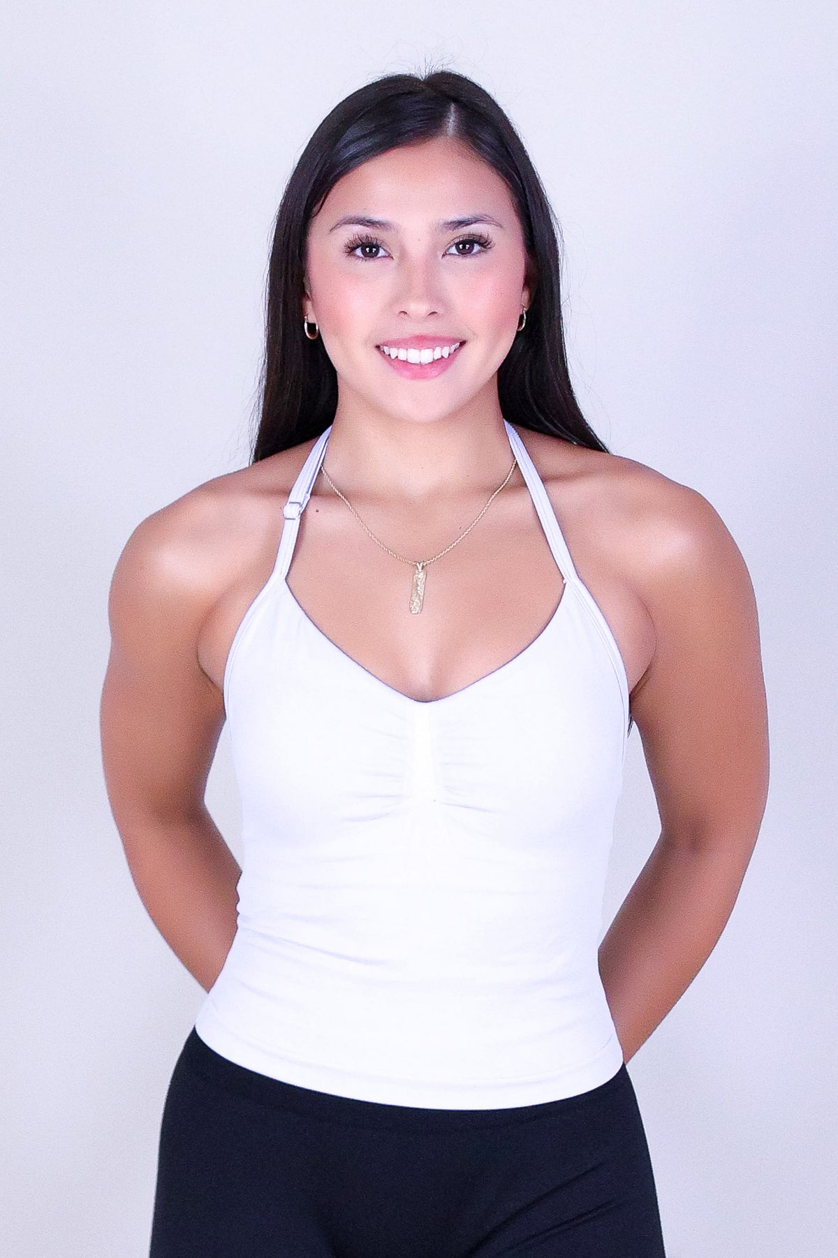 PRETTY FIT HALTER TOP is available in color LIGHT BLUE and in size SMALL, MED, LARGE.